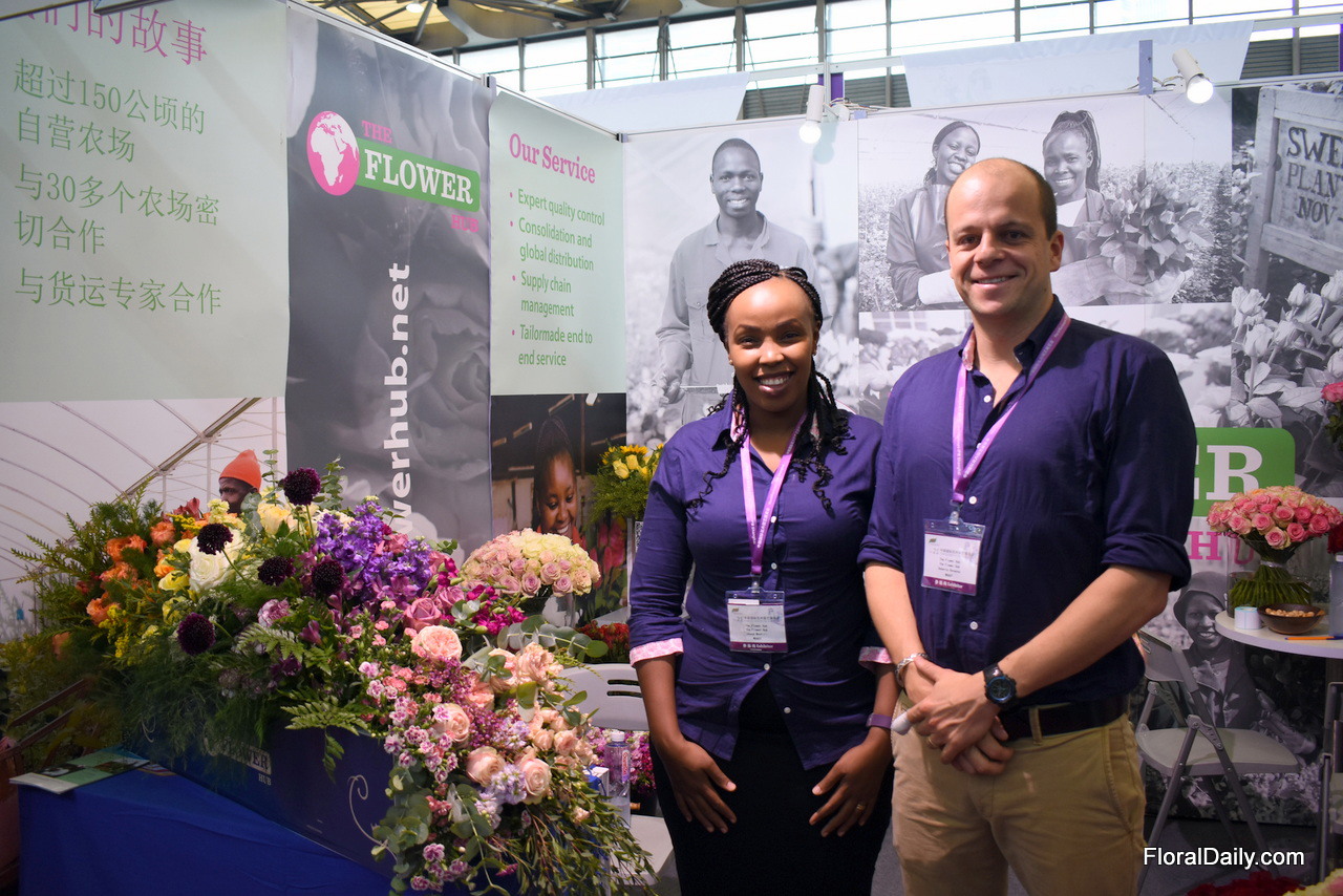 Joyce Muchiri and Roberto Bonanno of the Flower Hub. According to Bonanno, the Chines market is quite event driven and they are fond of niche products. Besides, more and more is being bought online.