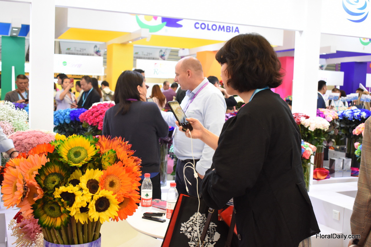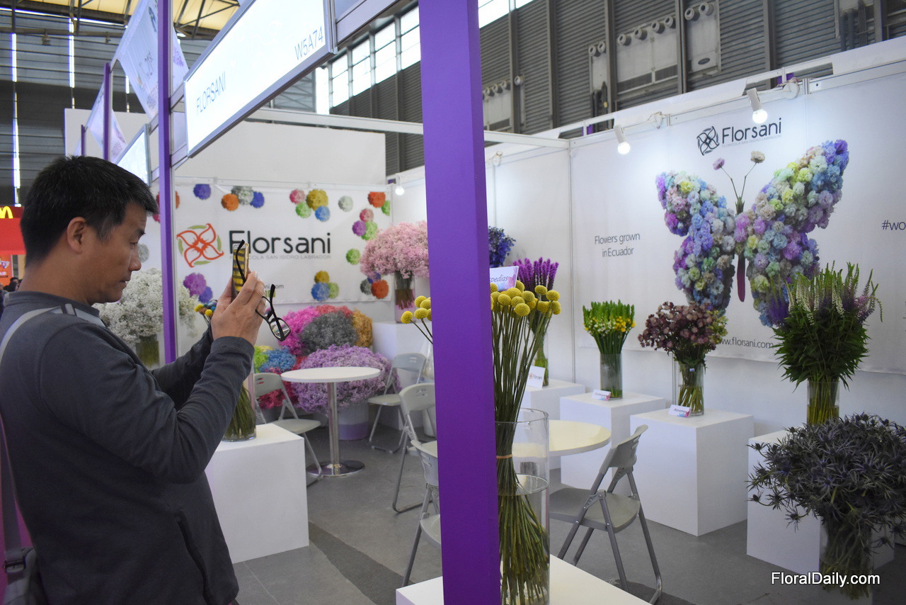 Mauricio Briceño of Turflor supplies around 1-2 percent of their carnation production to China. He feels there is room for good quality flowers on the market and in terms of infrastructure, he see that the Chinese importer is willing to learn how to deal with flowers. Over the last years, they Turflor has been investing in the process of tinting flowers and they are pleased that they can now put a product on the market with more or less a similar shelf life as that of their natural flowers. At the show, it attracted the attention of the Chinese buyers. More on this later in FloralDaily.