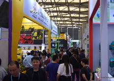 Busy at the booths of the South American growers.