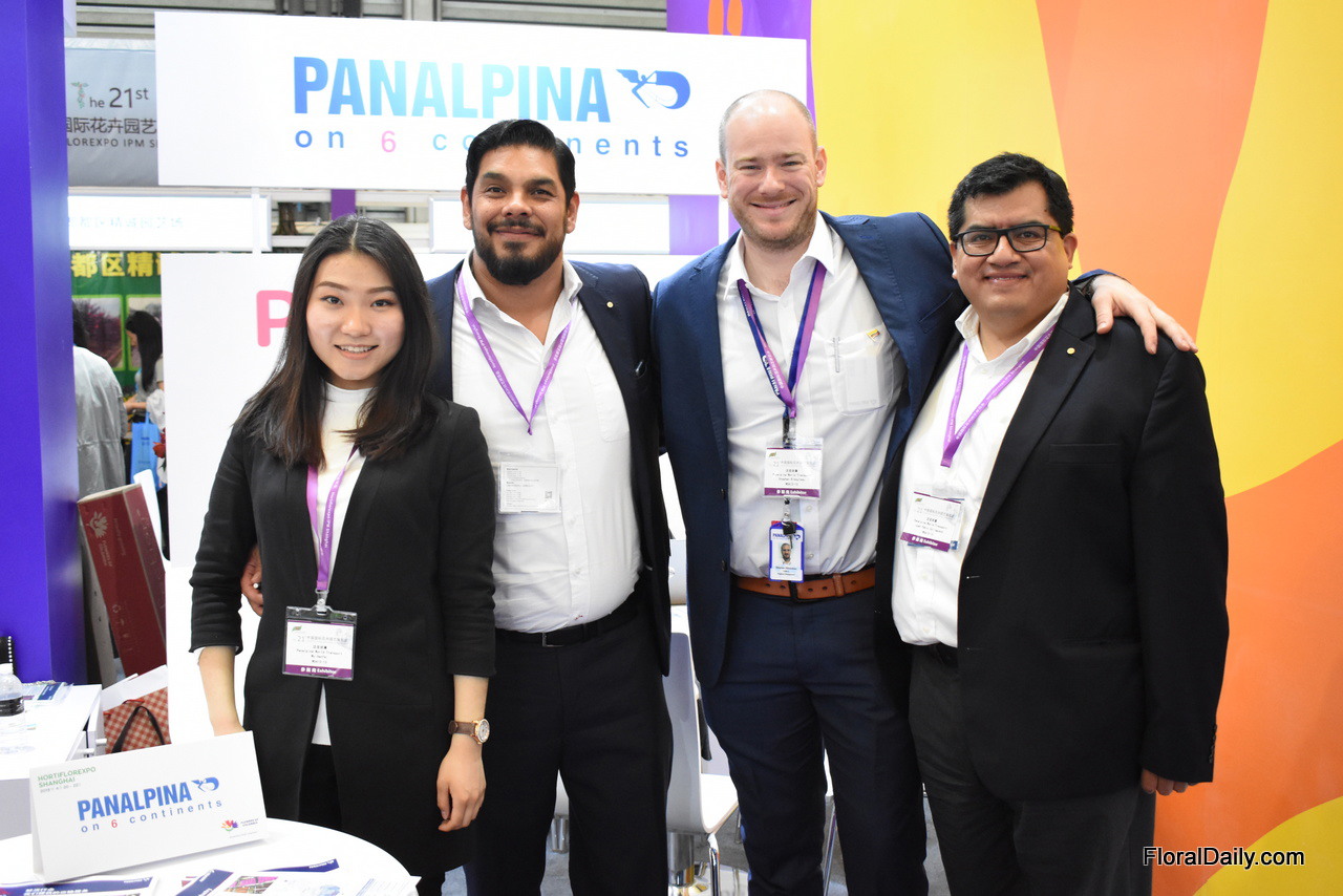 The team of Panalpina; Luis Carlos Bautista, Stepham Ribauleau and Juan Pablo Collaguazo with their interpreter Wu Hanfei. With several offices and 1,500 employees, they are one of the biggest in China. Over the last years, they have increased their shipments of flowers.