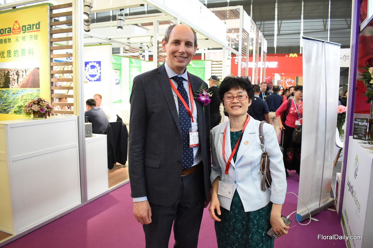 Tim Briercliffe of AIPH with Haiyan Kong of China Flower Association visiting the show.