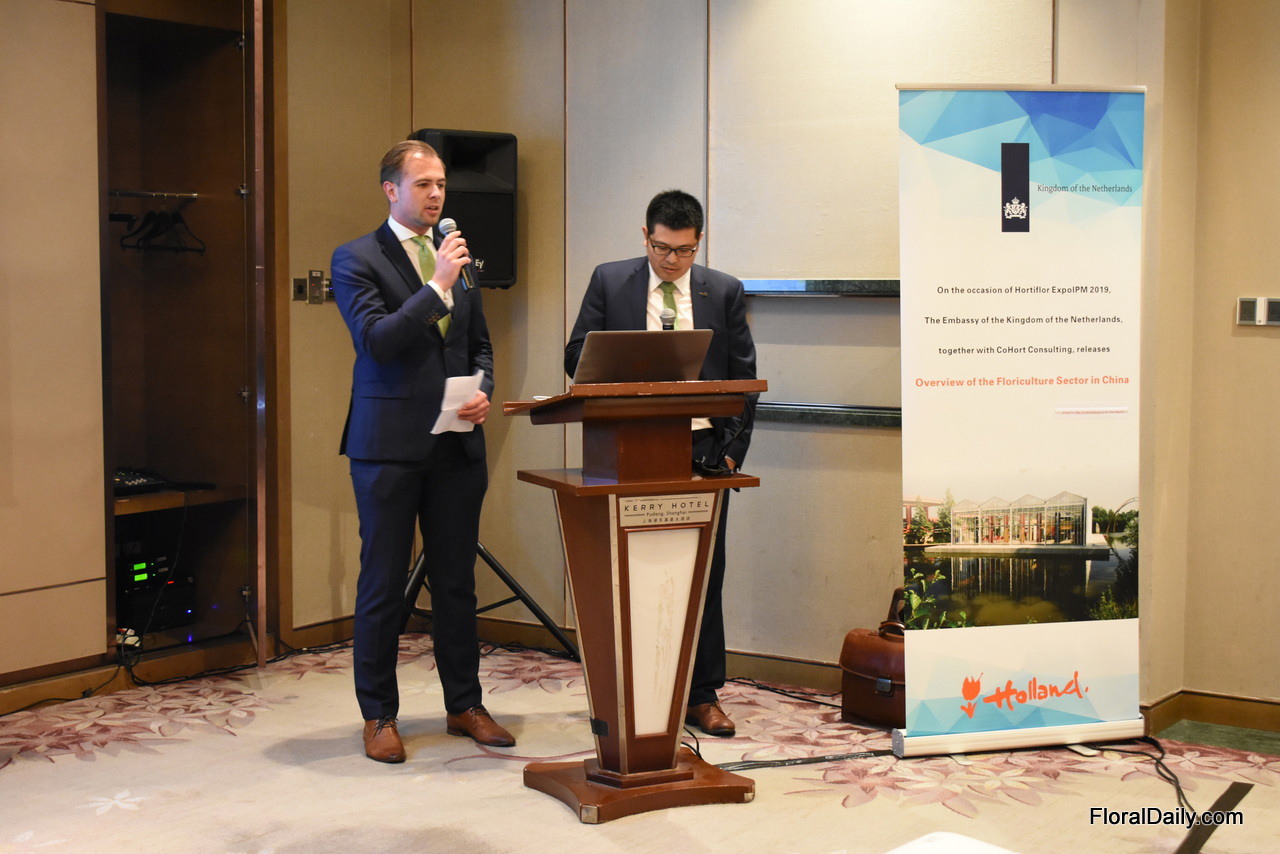 Oscar Niezen of Cohort Consultancy presenting the Floriculture report "Floricultural sector in China", prepared for RVO/Ministry of Economic Affairs, The Netherlands and Royal Netherlands Embassy. The report is available on request via [email protected].
