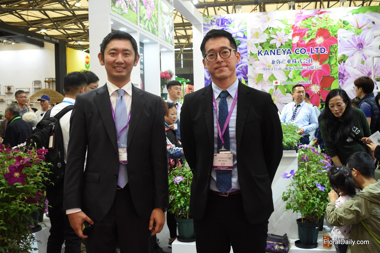 Kazuta Aoyama and Yamaguchi Tomohike of Kaneya. Besides pots, they also supply several varieties of young plants to the Chinese market.