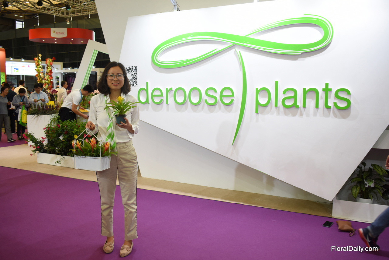 Amanda Lui of Deroose Plants presenting their mini bromeliads in 9cm pots. They produce a few finished plants to promote the product on the Chinese market. "Currently, most of the bromeliads grown are the larger traditional red colored ones, which are mostly used for public areas. However, we see online shops coming up and we believe there will be a demand from the end consumer too. We therefore introduce these smaller, and different than traditional colored, bromeliads to the Chinese market.