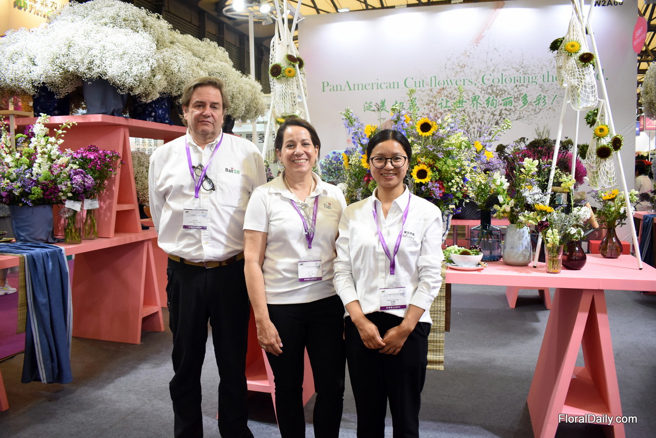Joaquin De La Torre and Lourdes Reyes of BallSB together with Heidi Zhao, Regional Product Manager - China at Ball Horticultural presenting the cut flowers of PanAmerican Seed. Special emphasis is put on the gypsophila. They are eager to introduce it in China and soon it will be propagated by a grower in Kunming.
