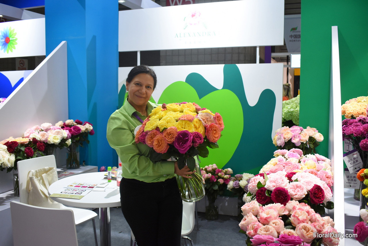 Nancy of Alexandra Farms. This Colombian garden cut rose grower is exporting their roses to China for about 5 years now. Every year, the volumes are increasing little by little and they are happy that they already supply the market on a weekly basis, as it is for many growers exporting to this country still on event base only.