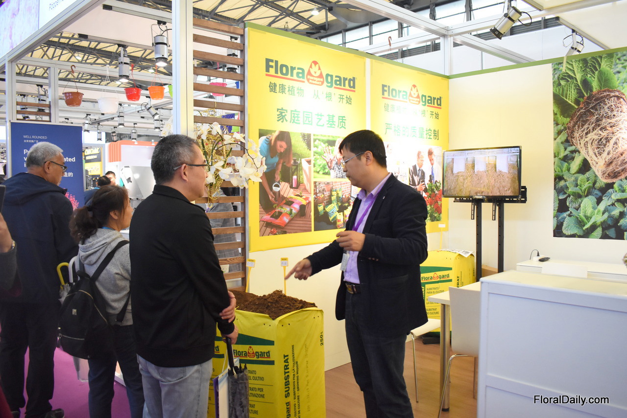 Floragard presenting their products at the German pavilion.