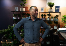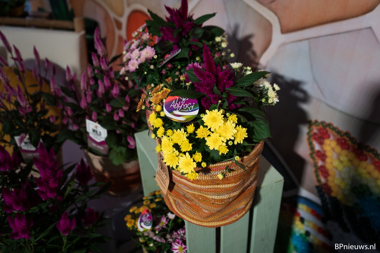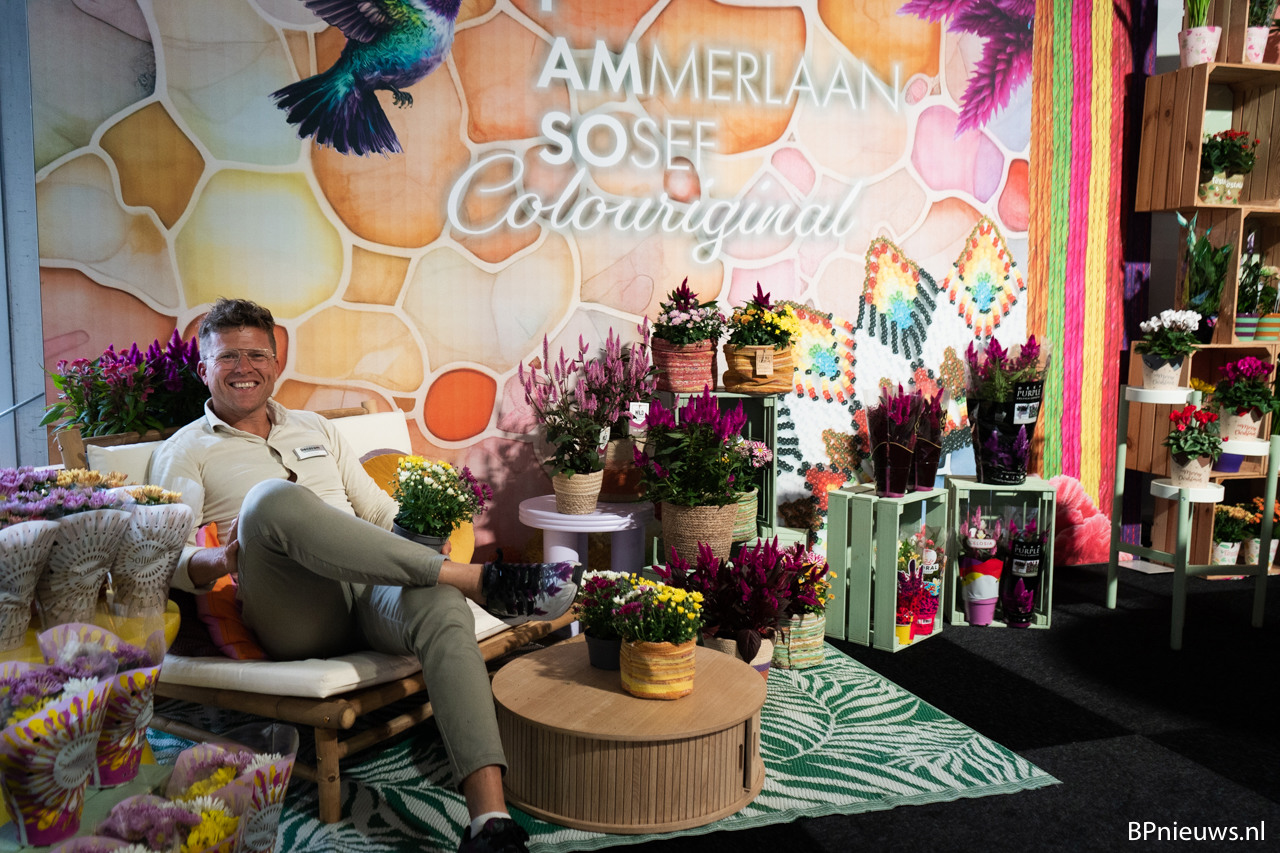 Gertjan Sosef of Ammerlaan Sosef in their colourful stand. The Chrysanthemum season has started again, and they like to play with colour, varieties and ideas.
