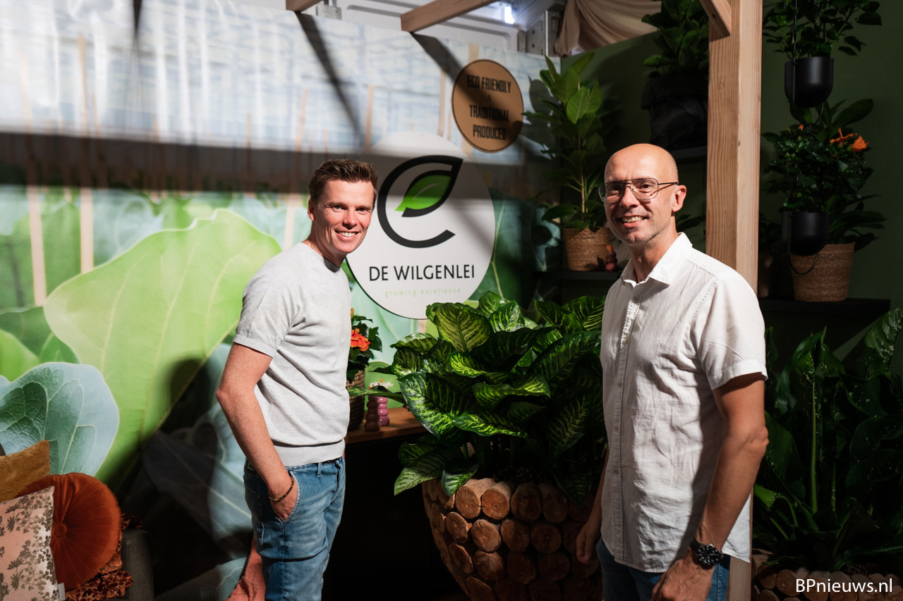 Robin van der Knaap and Gaston van der Meulen of Wilgenlei. They market new varieties of well-known products, such as a special variety of Dieffenbachia.