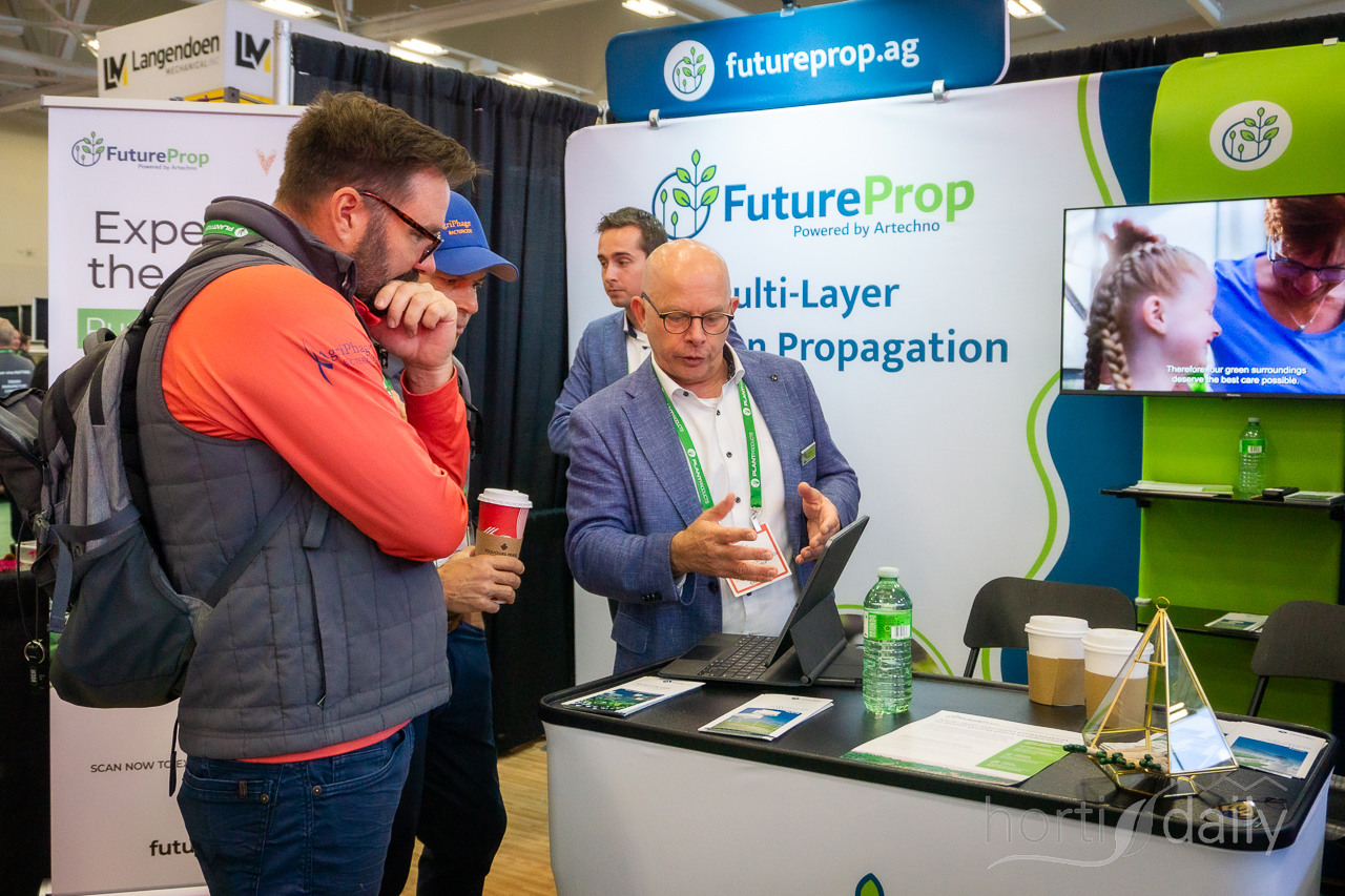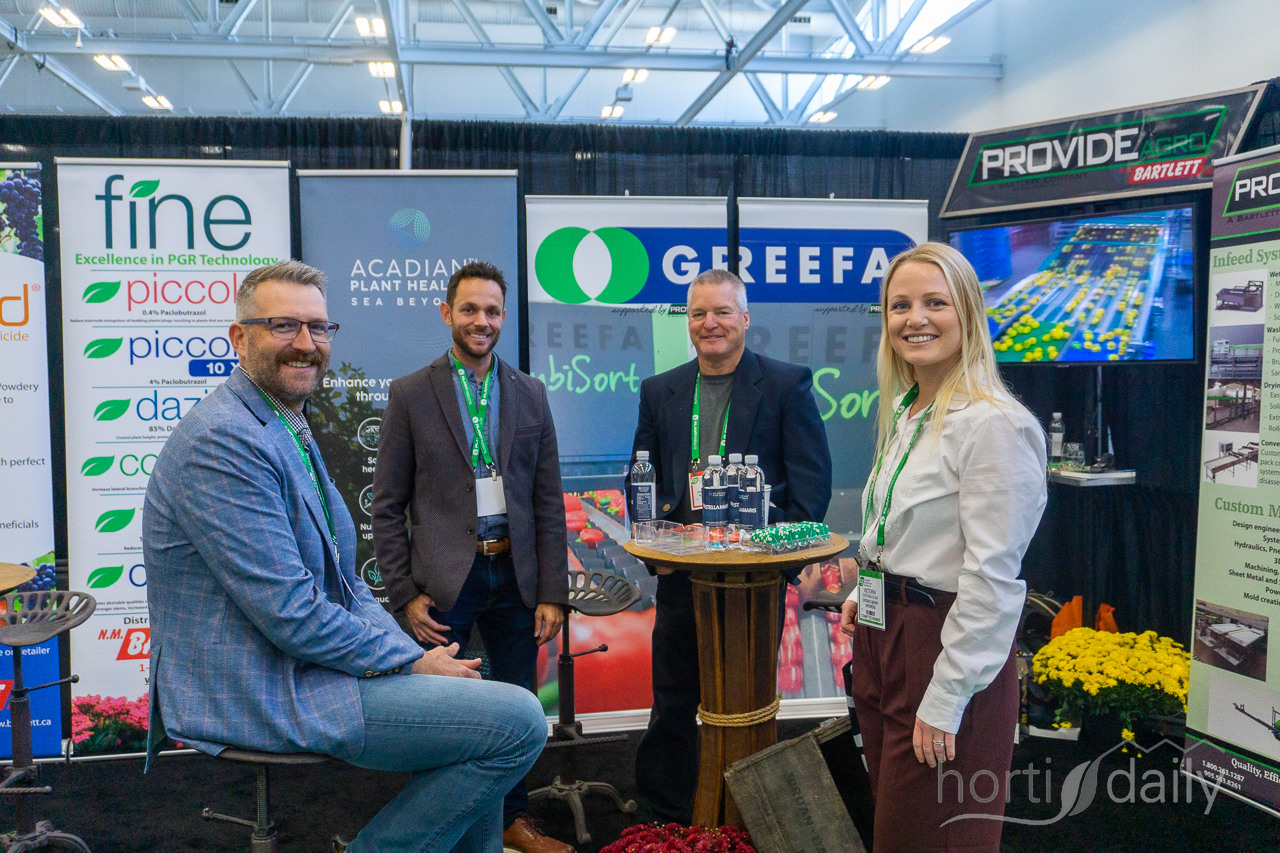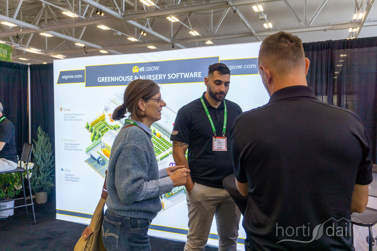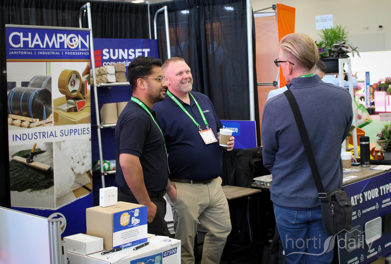 The exhibition drinks on Wednesday between the stands of Royal Brinkman Canada and Proven Winners Plants, among others.