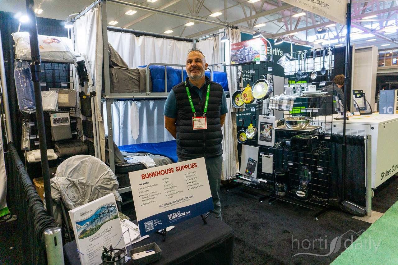 Tony Jacobs, Bunkhouse Supplies, helps growers set up their housing for workers.