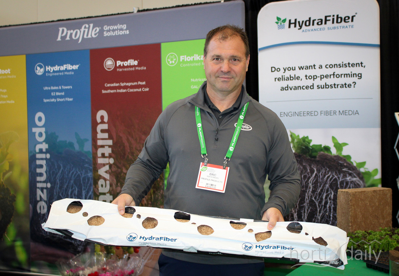Gary Sainsbury of Profile Products with the HydraFibre TruRoot product.