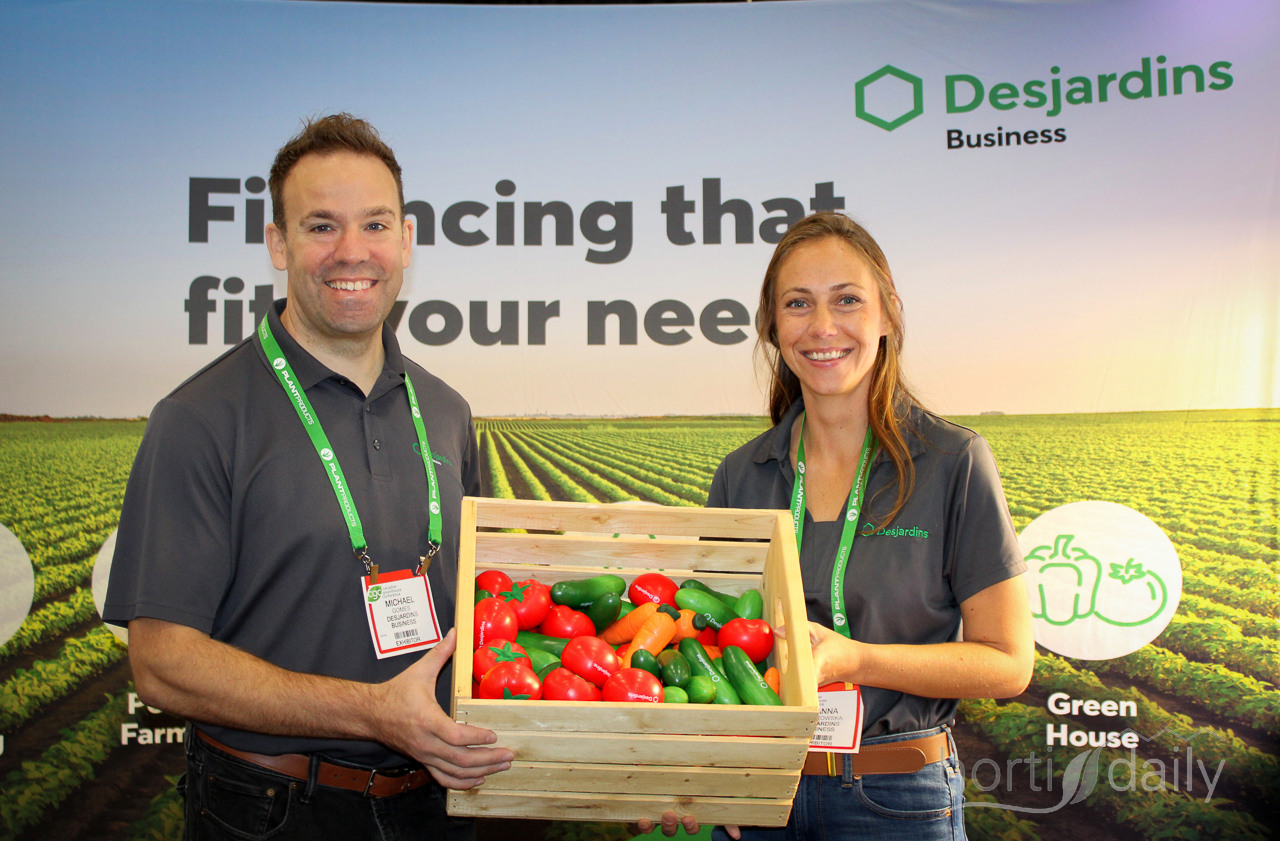 Michael Gomes and Joanna Brzozowska of Desjardins Business with no doubt among (the children) of fair visitors popular vegetable toys.