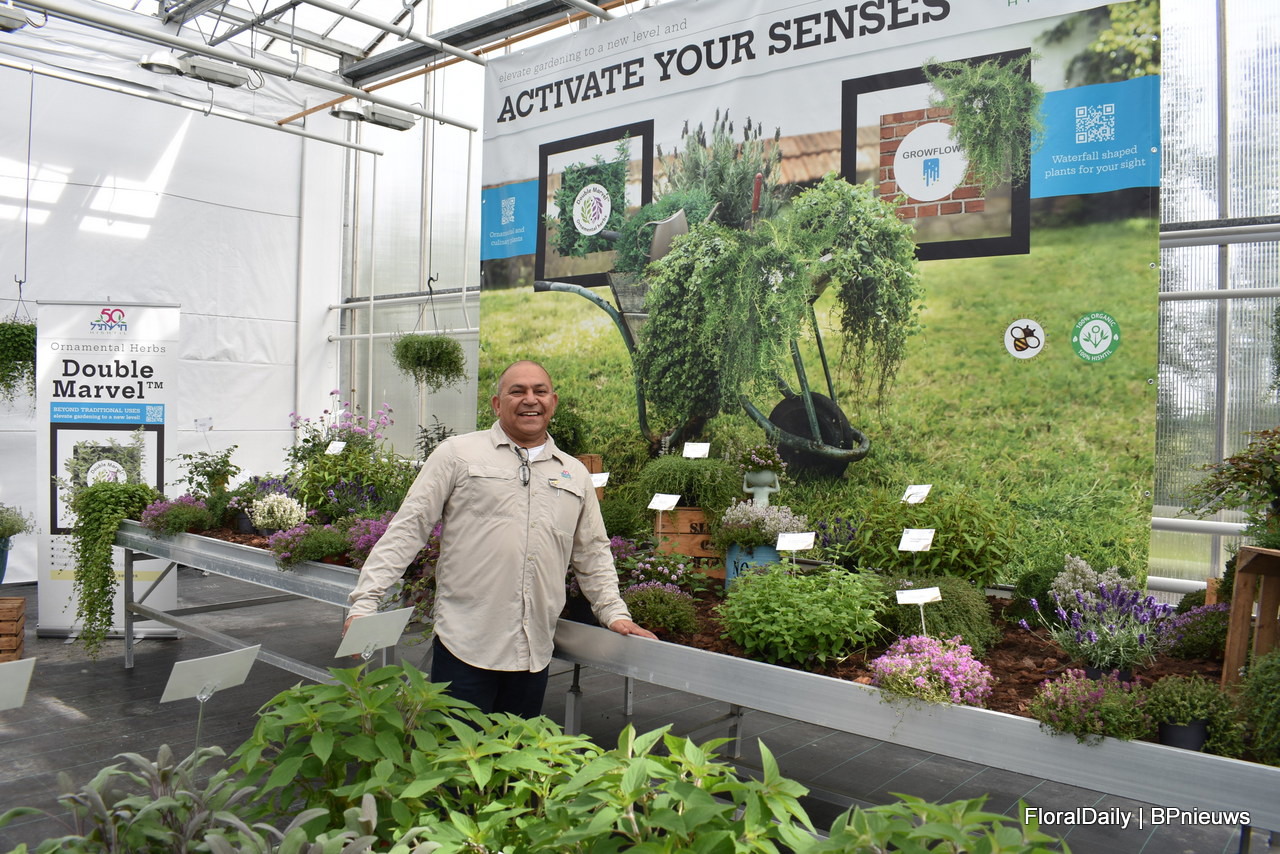 Haim Rosenblum of Hishtil presented the Double Marvel concept again this year and this year big in the garden, together with the Growflow concept. With this, they want to show that herbs are not just for culinary pruposes, but are also something for the eye. This increases options for consumers.