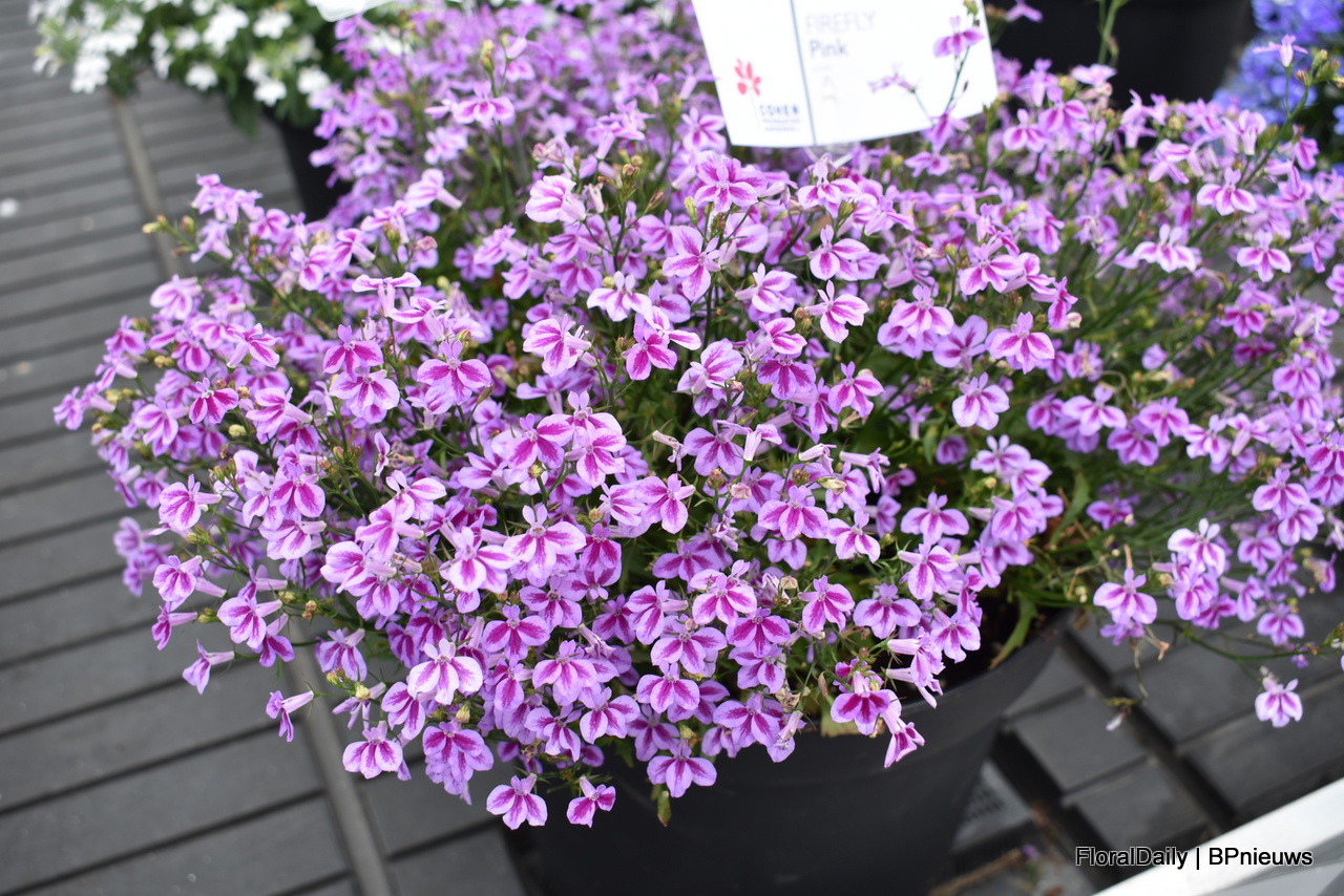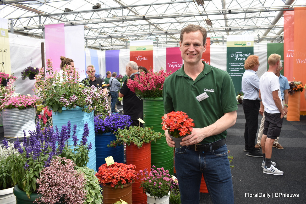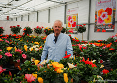 Asaf Cohen with Westhoff's new introduction, Firefly. It has pink small bicoloured flowers that bloom richly and early. This variety is good for small pot production.