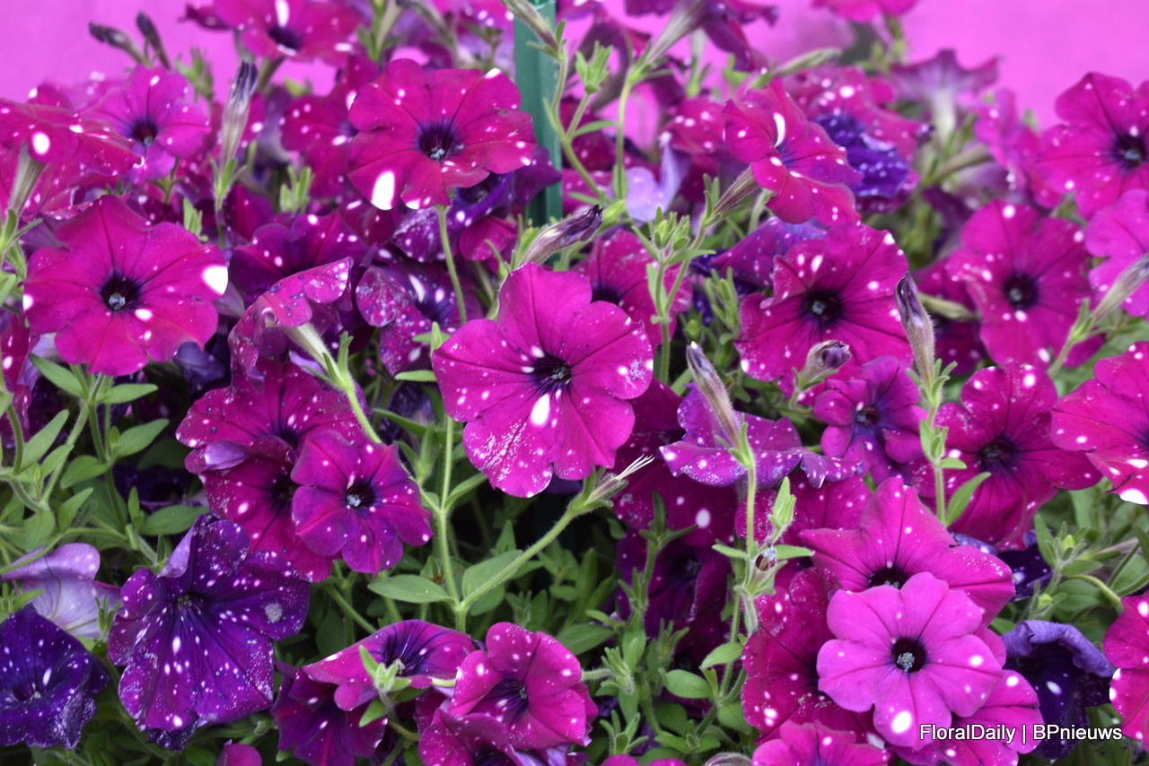Top tunia from Padana. The series is constantly improving. A highlight is spotty purple, see the picture. This petunia is purple with white spots and the colour remains stable even when using PGRs if you want to keep it compact.