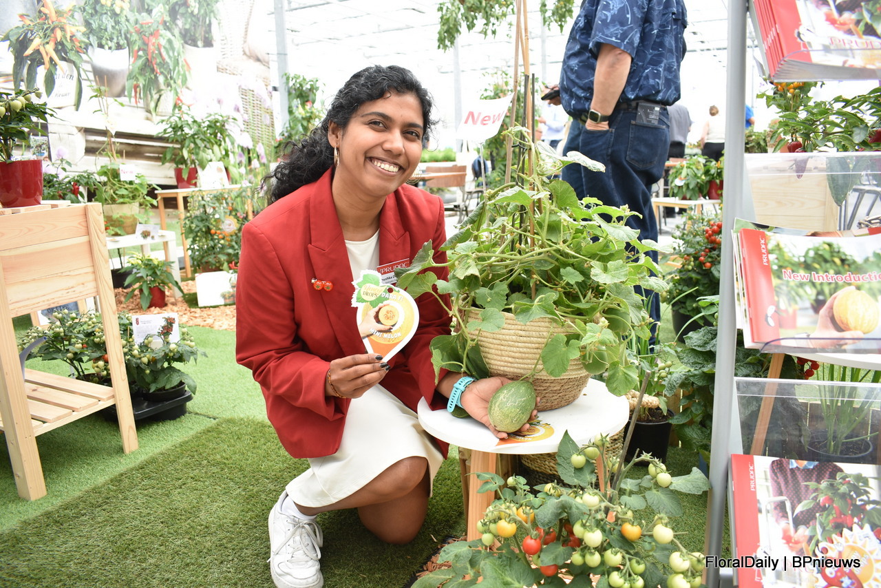 Anushka Deshpande of Prudac with the mini melon Honey F1 Drops Dara. A melon for the hobby gardener.