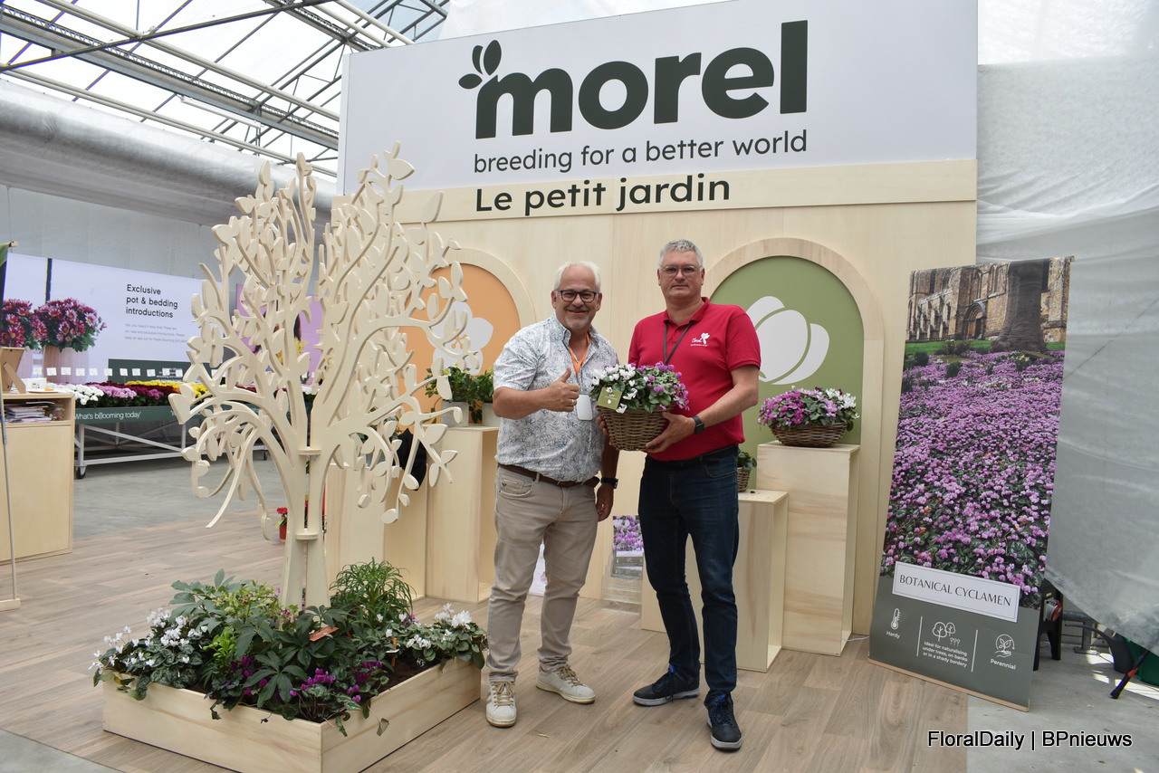 Eric Forschelen and Stephane Lemoine of Morel with the Botanical cylamen. The two varieties are winter hardy (-15 degrees) Hederifolium blooms from September to November and Coum from December to end March, so combined you have a flowering garden for 6 months.