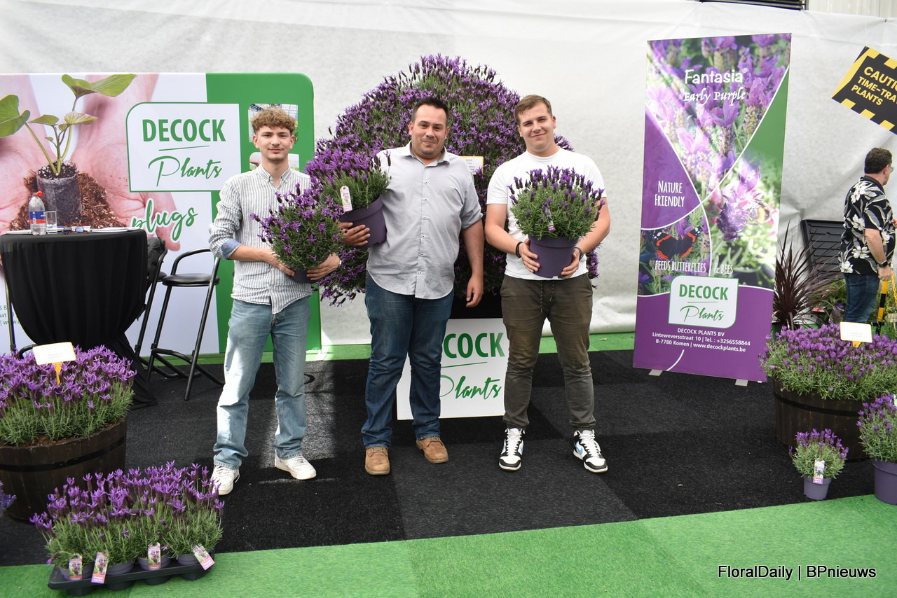 Decock's team with Lavendula Fantasia Purple Flame. A stoechas type. Its special feature is that it flowers for a long time, has large flowers and has 3 generations of flowers on the plant, so a lot of flowers. In addition, this one is botrytis resistant, according to Decock, many others already have incipient botrytis and this one does not. And last but not least, it attracts huge numbers of bees and bumblebees
