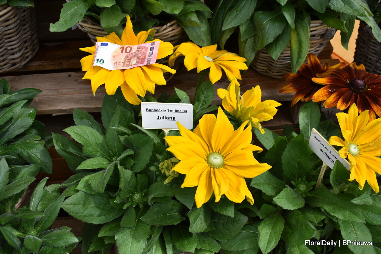 Juliana from Bull Genetics, grown by Kientzler has the biggest flower in Rudbeckia. Made visible with the 10 euro note