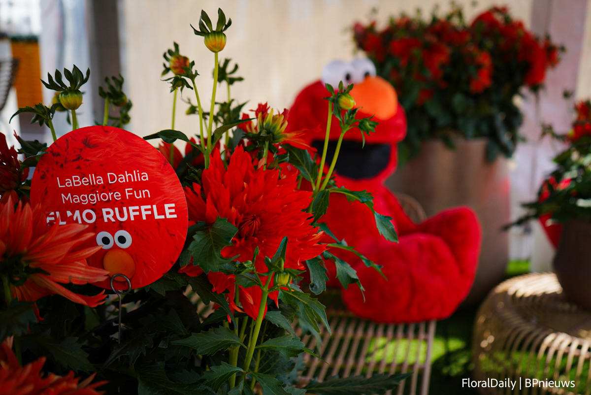 LaBella Dahlia Maggiore Fun Elmo Ruffle, with a real Elmo of course. This was one of the entries for the FleuroStar Award
