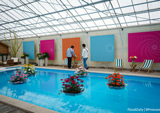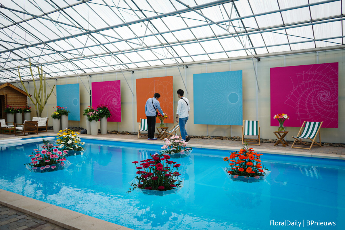 Floating gerberas in the pool at Schreurs