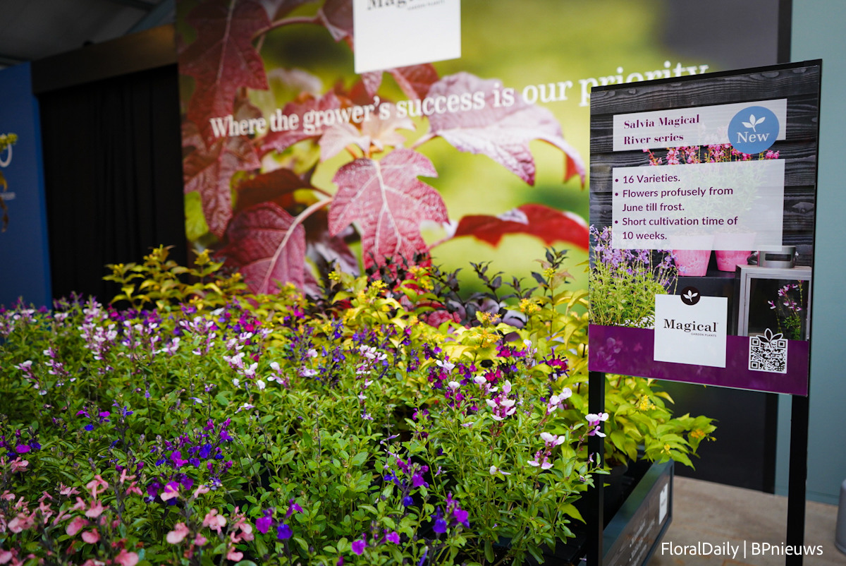 Jaldey's new salvia series is called Melba. A series of new genetics. The flowers are wide, full and bicoloured, creating a Wow effect as a result. In addition, the plant is more compact so the flowers stand out better. According to Jaldety, they do well in a mix of 2 and there are currently 3 varieties in the group.