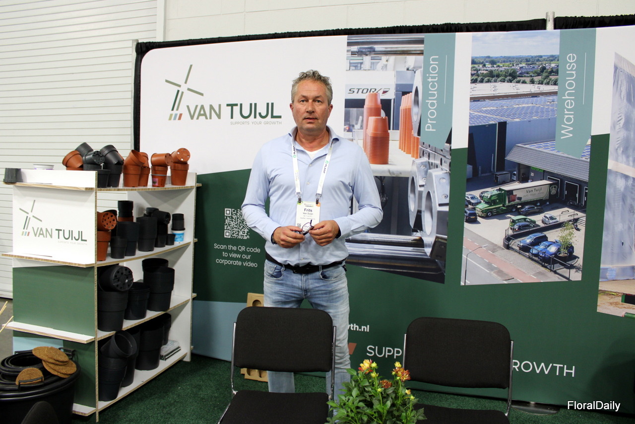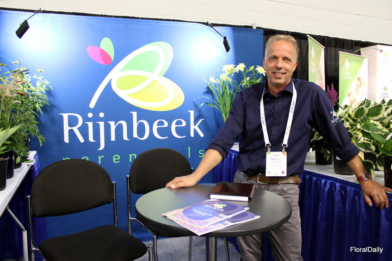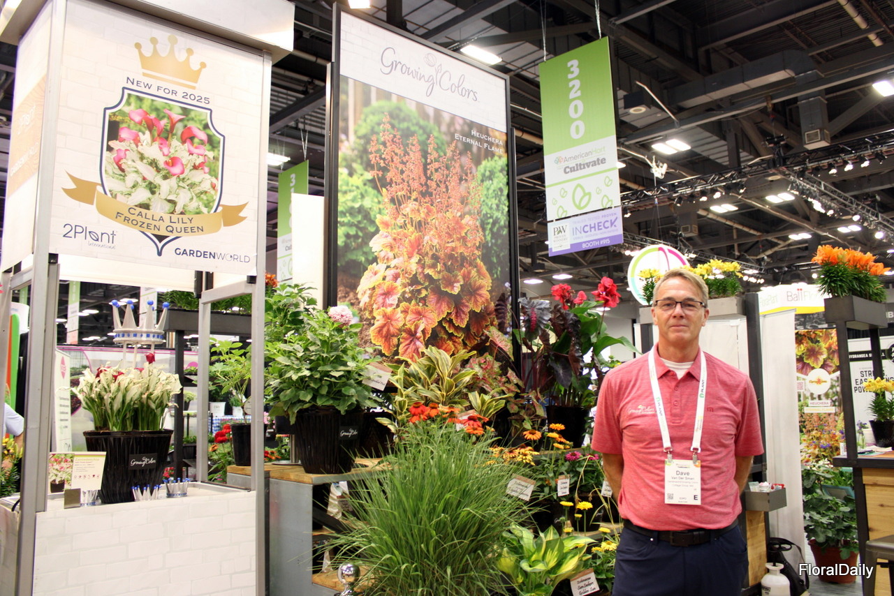 Dave van der Sman of GardenWorld and Growing Colors, next to the new Calla Lily Frozen Queen