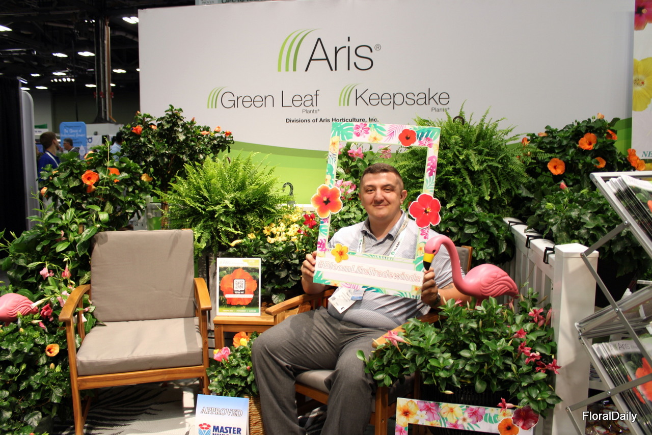Nate Owens of Aris Horticulture, who had a nice photo op in their booth