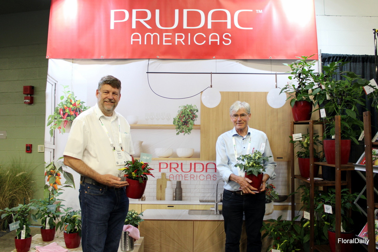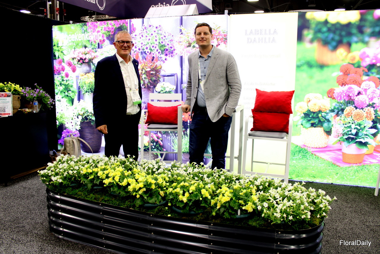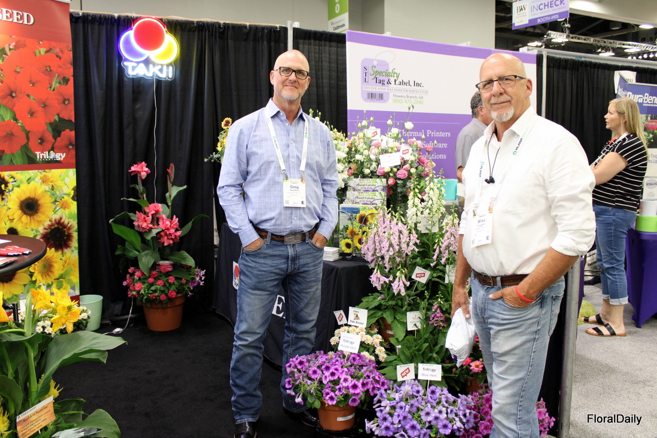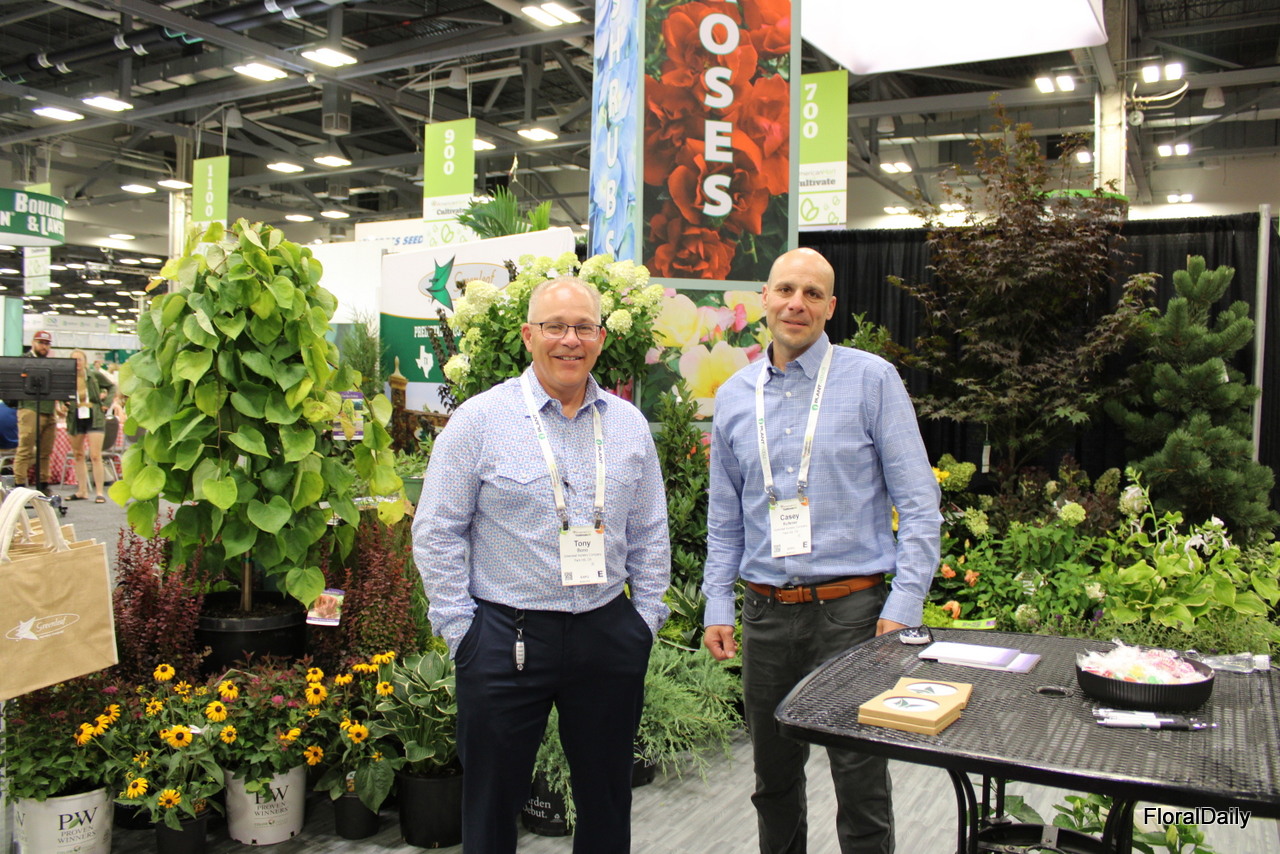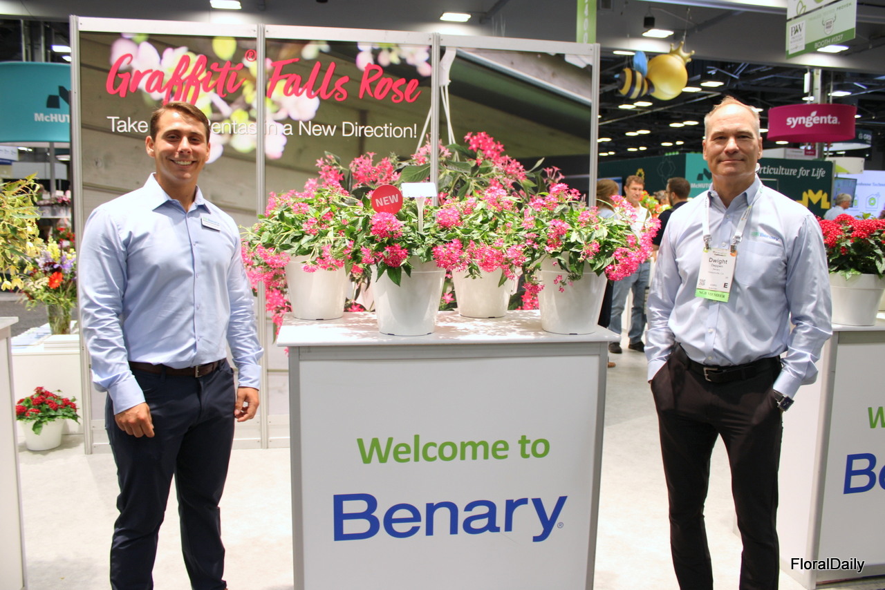 Anthony Cornacchia and Dwight Deppen of Benary, showing the new Graffiti Falls Rose