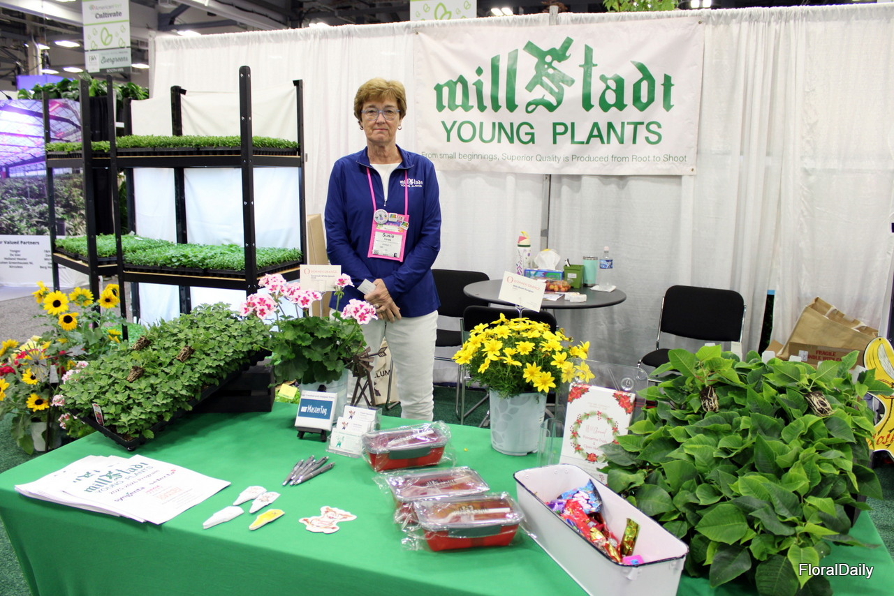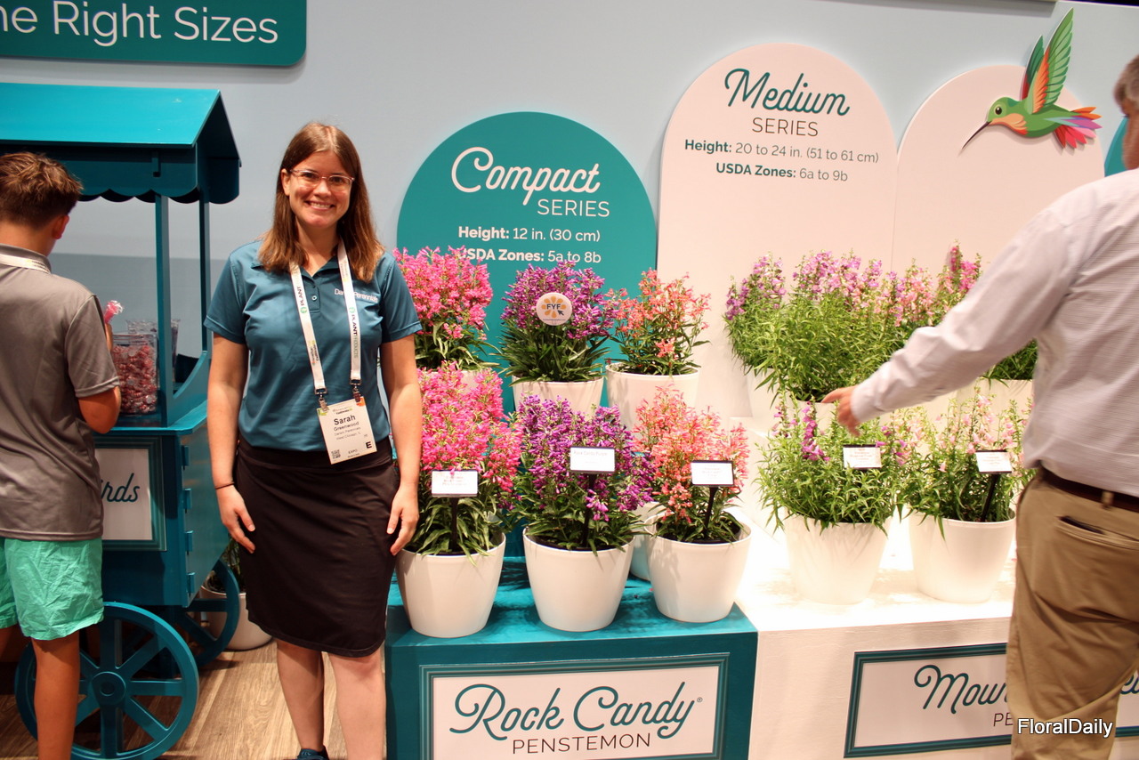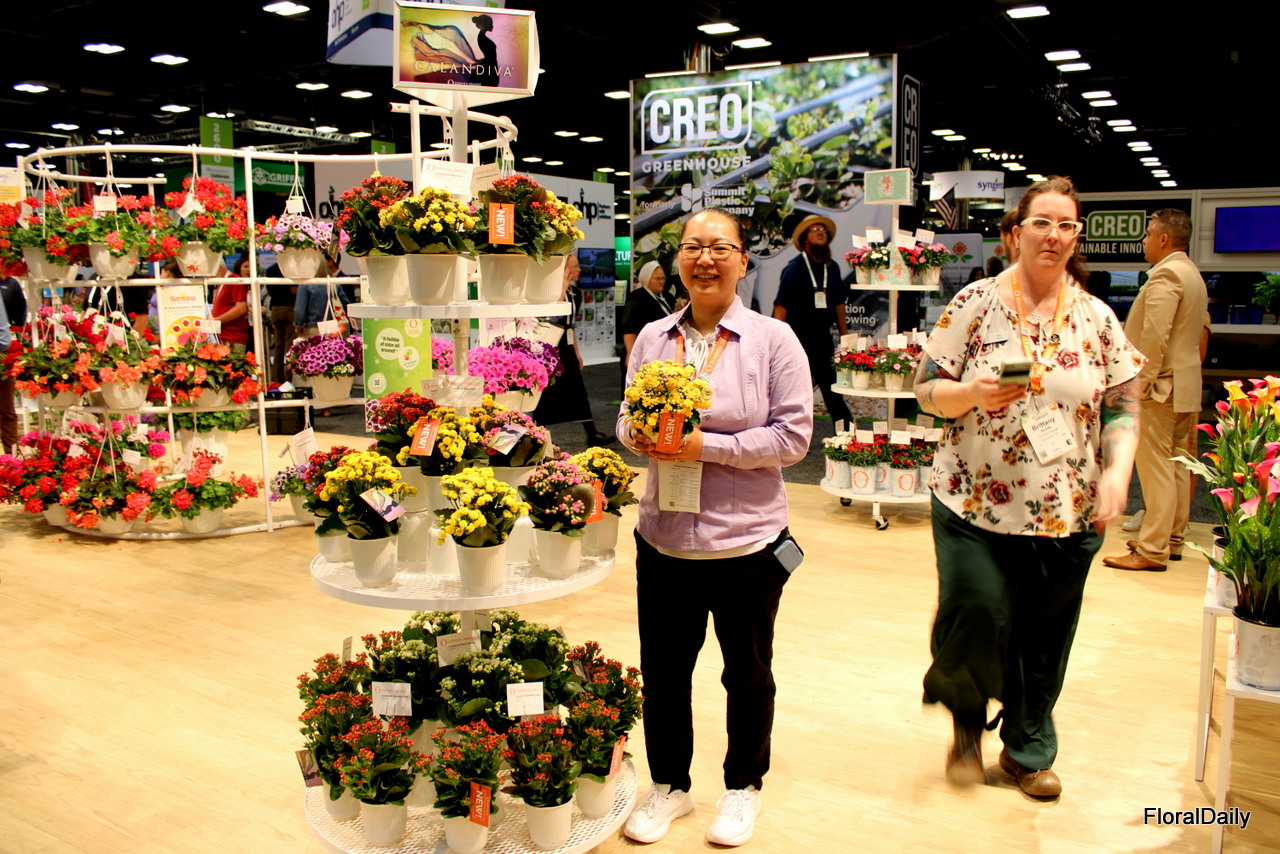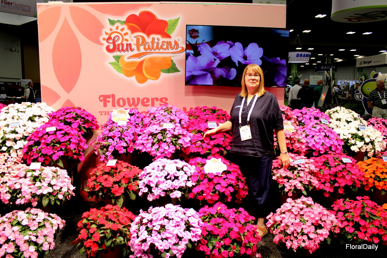 Michelle Miller of Sakata in their colorful display of SunPatiens