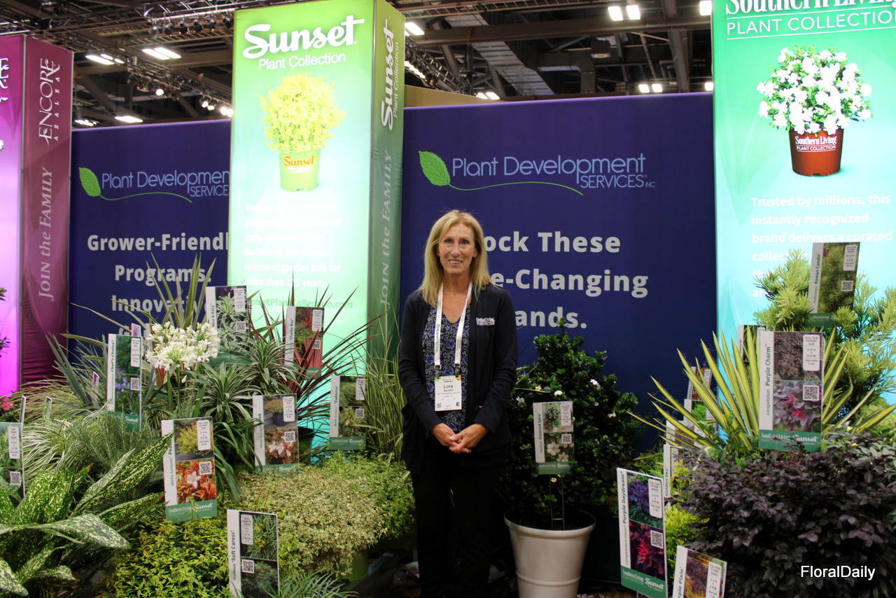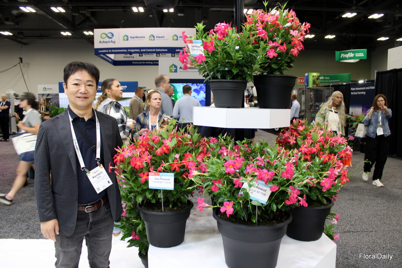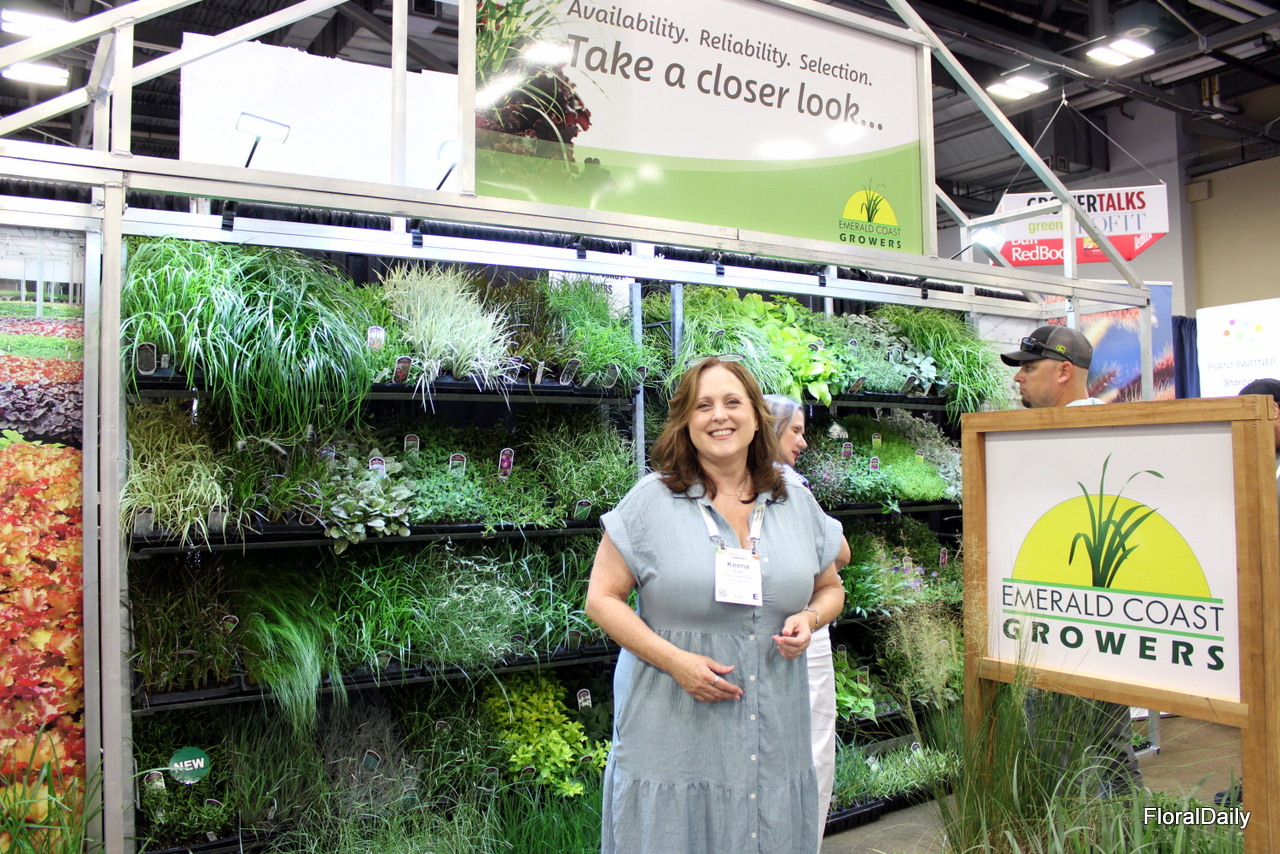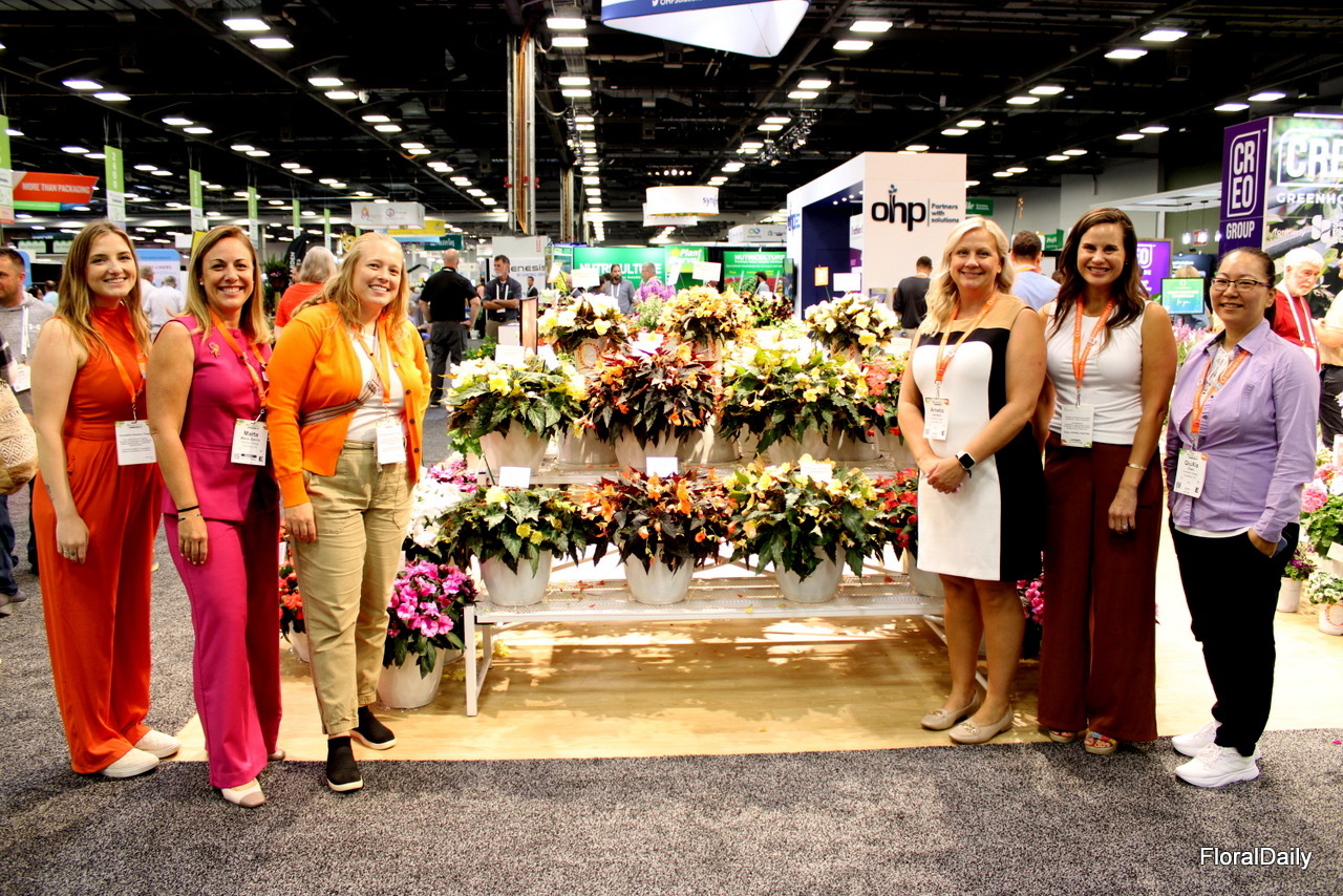 Michelle Miller of Sakata in their colorful display of SunPatiens