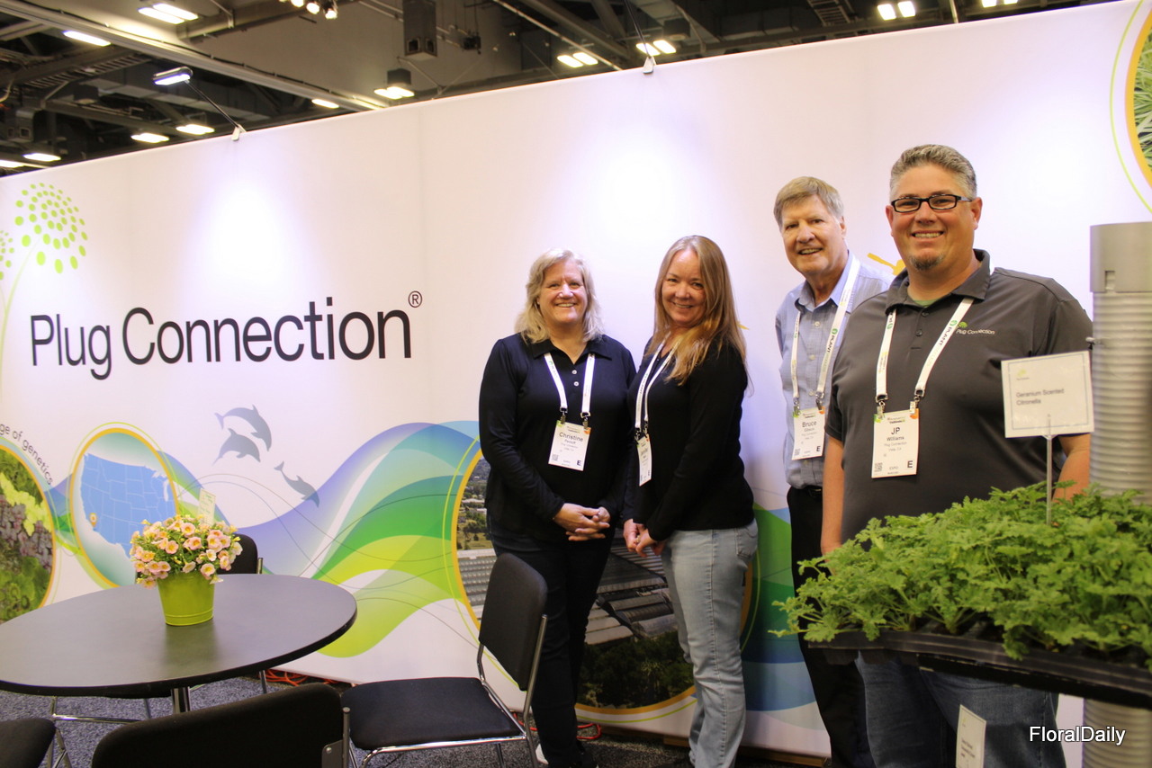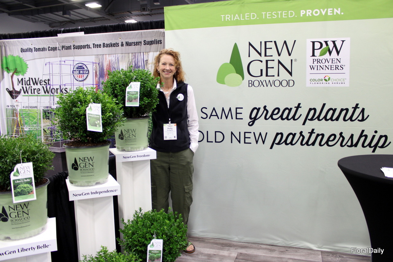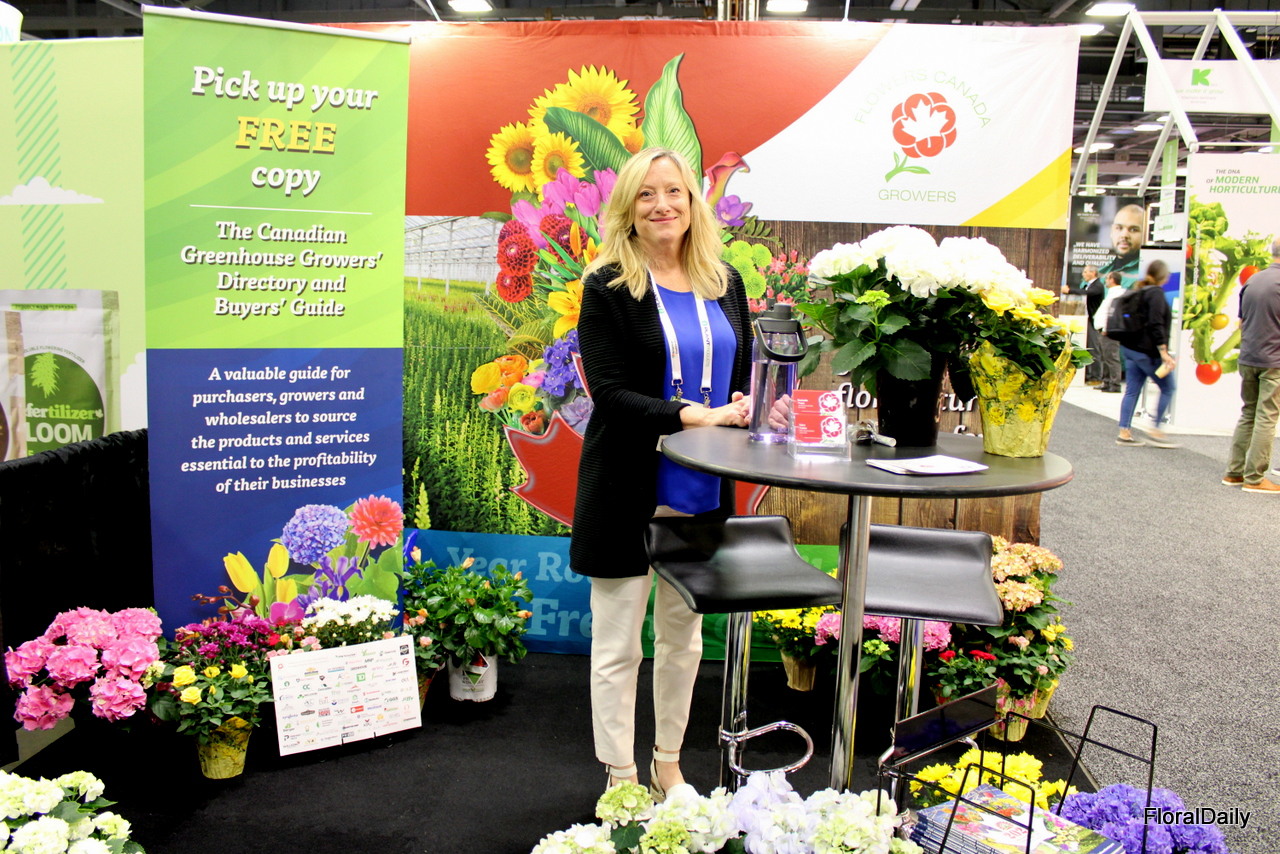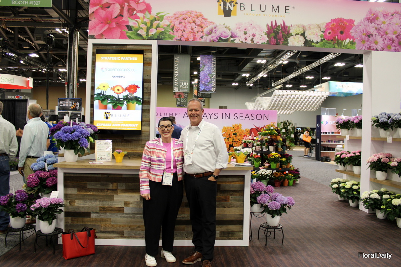 Michelle Miller of Sakata in their colorful display of SunPatiens