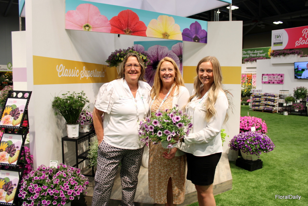 Val Rollins, Julie Bergmoser and McKenna Merkel of Proven Winners, showing the Classic Supertunia