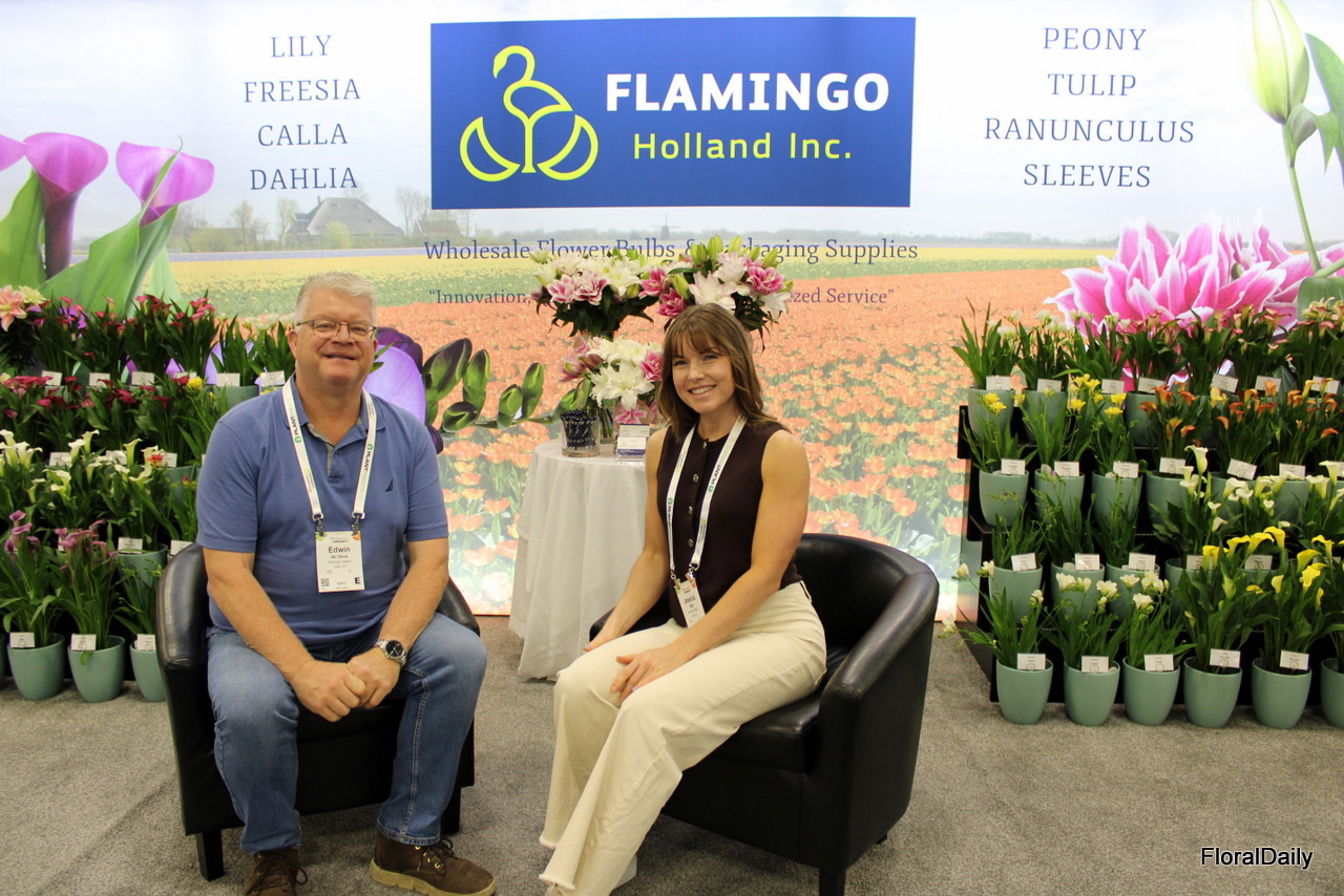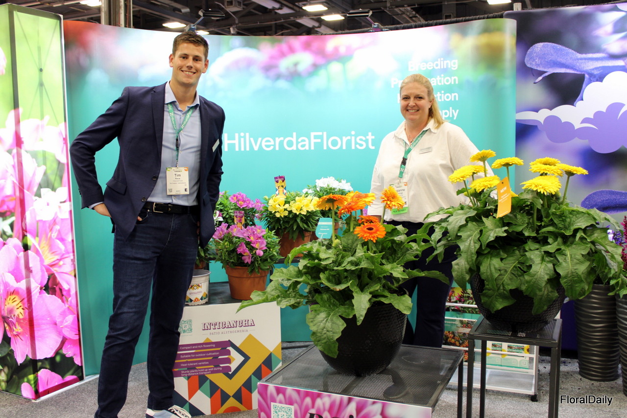 Tim Reus and Mazanne Pennings-deBoer of HilverdaFlorist, showing the Inticancha Patio Alstroemeria