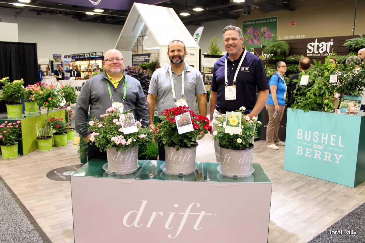 Tim Wood, Oz Marshall and John McDonough of Star Roses and Plants, showing the Drift groundcover roses