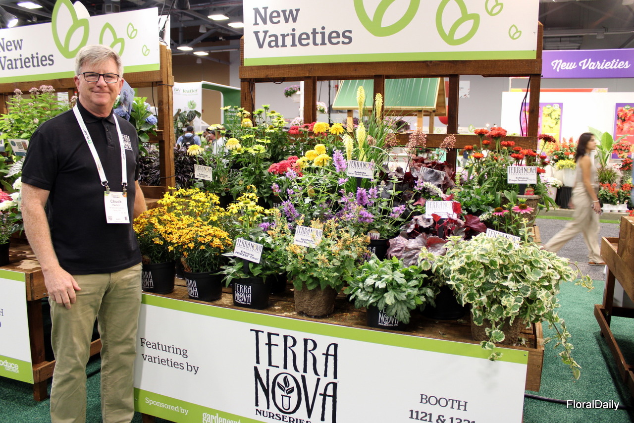 Chuck Pavlich showing the new varieties of Terra Nova Nurseries. Especially the Echinacea Fringe Festival was gaining a lot of attention at the show