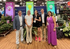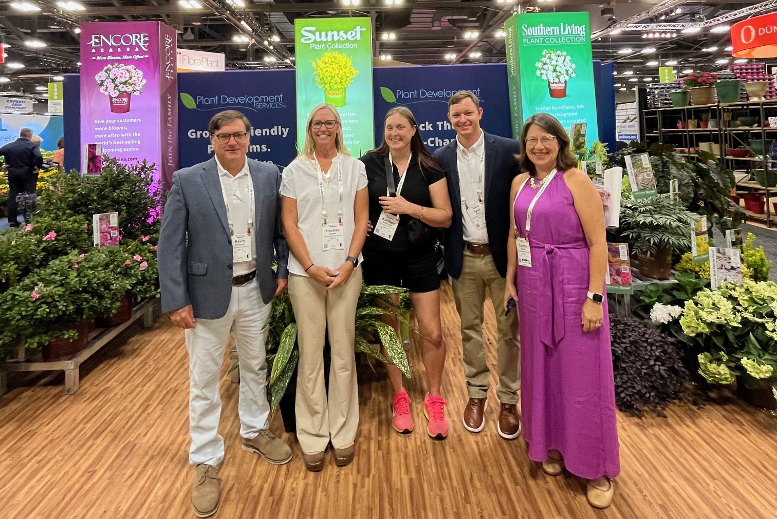 Kevin Northrop, Heather Gronek, Kathleen Schmucker, Tyler Brown, and Corrina Murray of Plant Development Services. The company had the new Autumn Kiss Encore Azalea on display