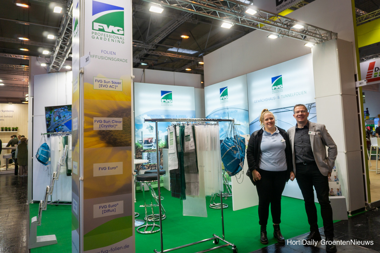 Denise Berens and Thomas Scherb of FVG with the different greenhouse films