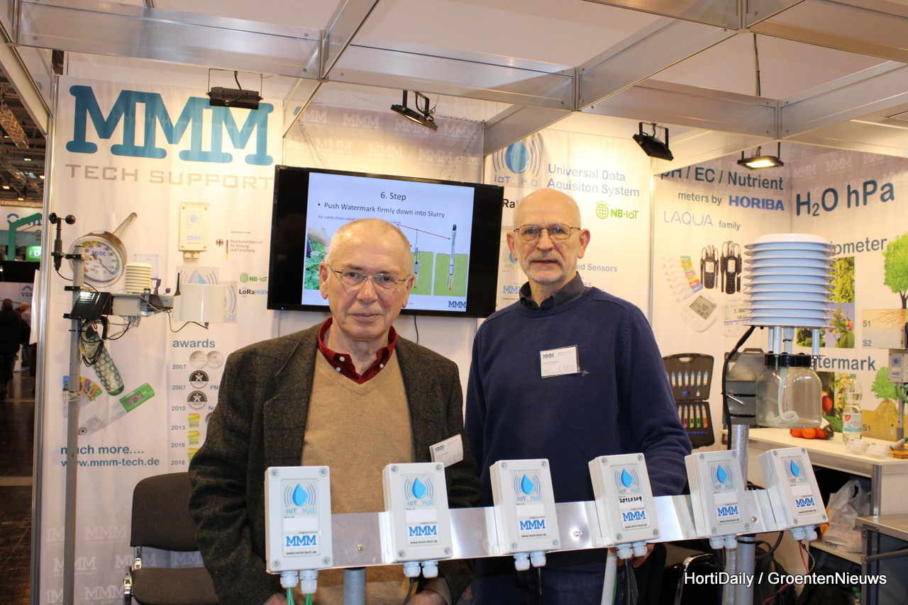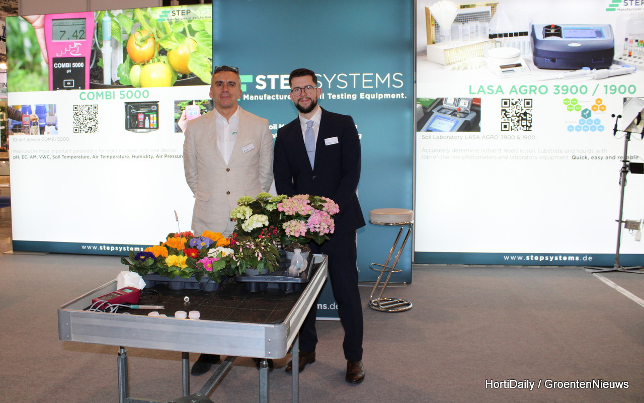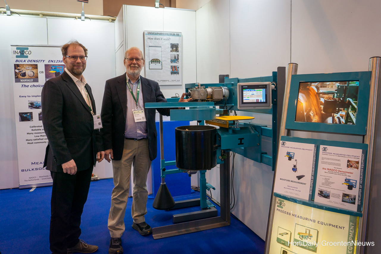 Alexander van der Dussen and Theo Coolen of Inadco with the solutions to measure density and moisture content, but also compression of substrate, among others, mostly used by major suppliers