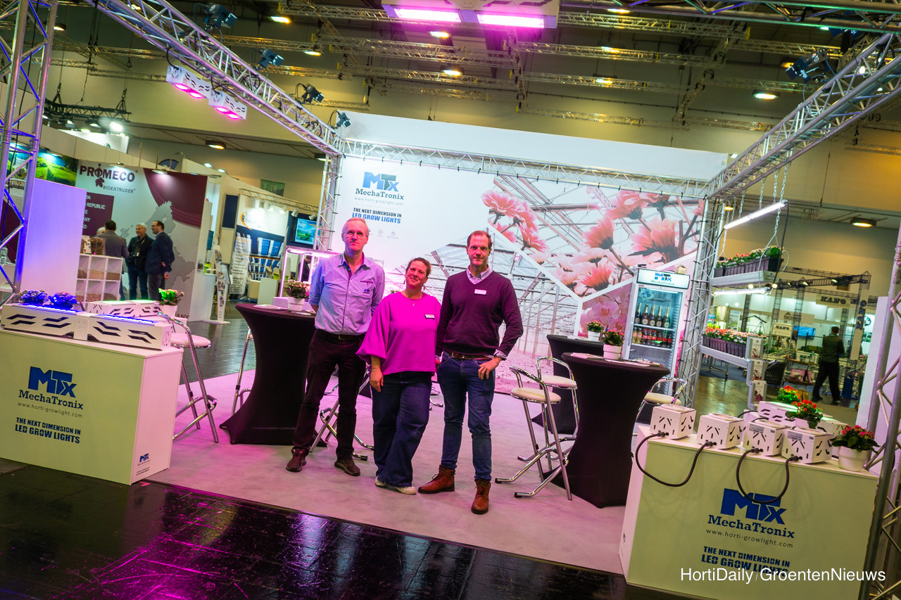 Patrick Casteleyn, Ellen Everaert and Edwin Grafe of MechaTronix showing their LED lighting solutions
