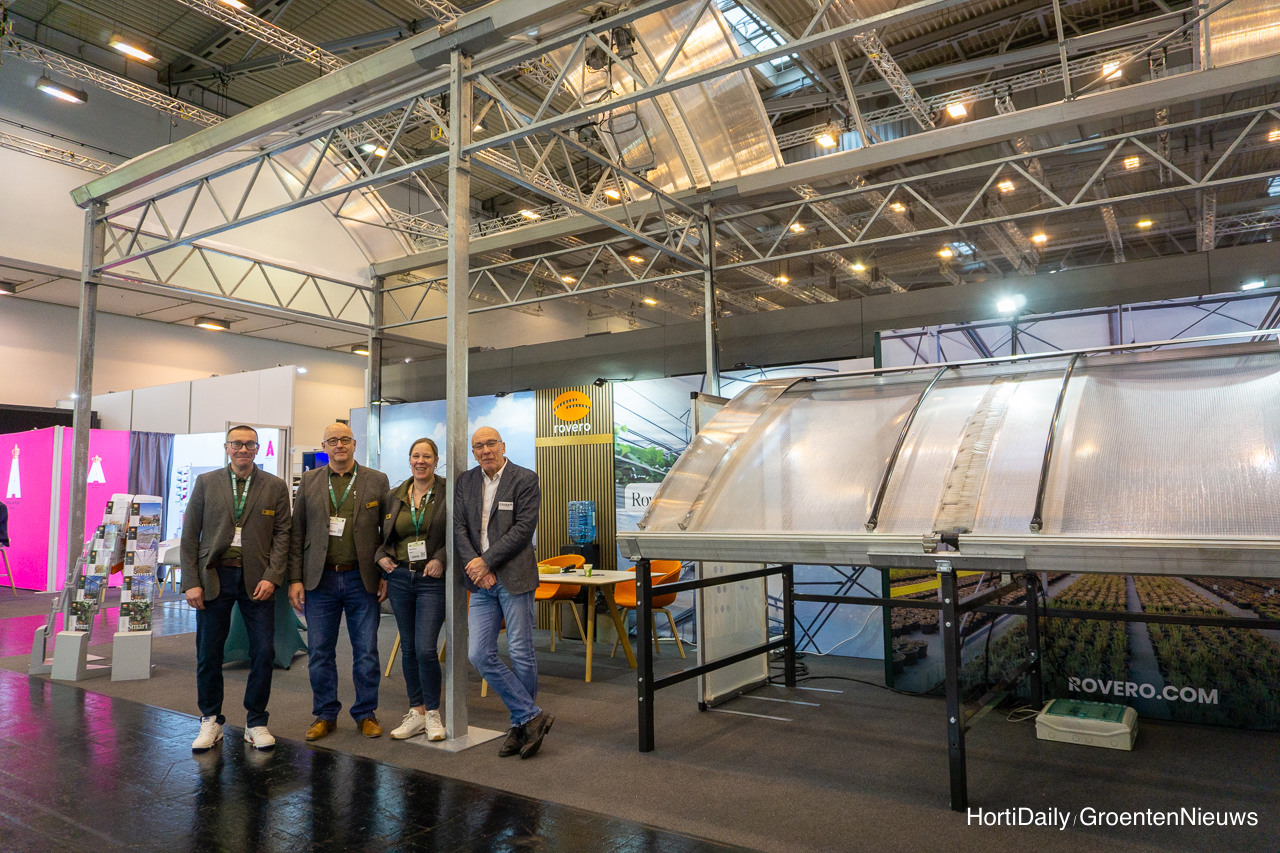 Rovero's greenhouse structures and the Rovero team: Frans van Gelderen, Jan van Hemert, Jolien Kerst, and their partner from Exner