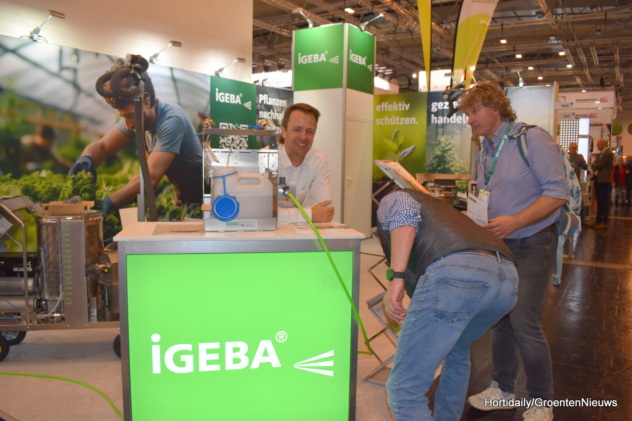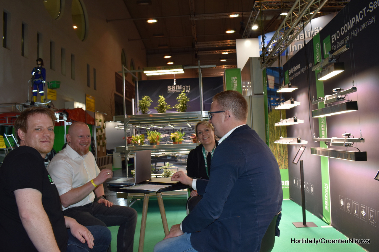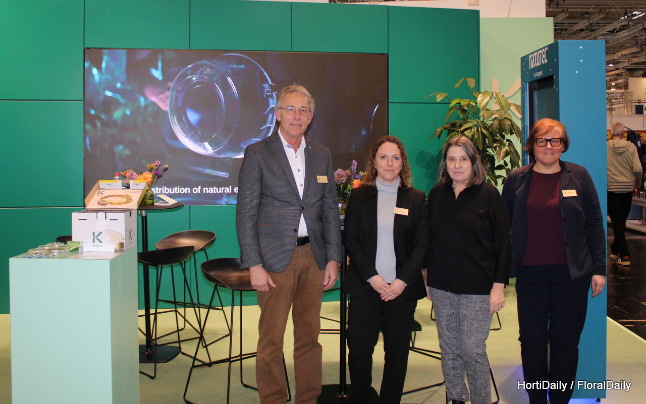 Aart Jan Bos, Laura Stahl, Giuseppina Hein and Adrea Rausch (koppert) The stand was pleasantly busy. Many growers were updated on the new addition Mycotal, the solution against whitefly.