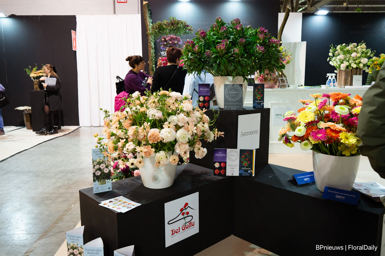Del Golfo is one of the Italian growers of Ranunculus Butterfly. Astronova, a breeding from Royal van Zanten is also on display at the Wedding Flowers