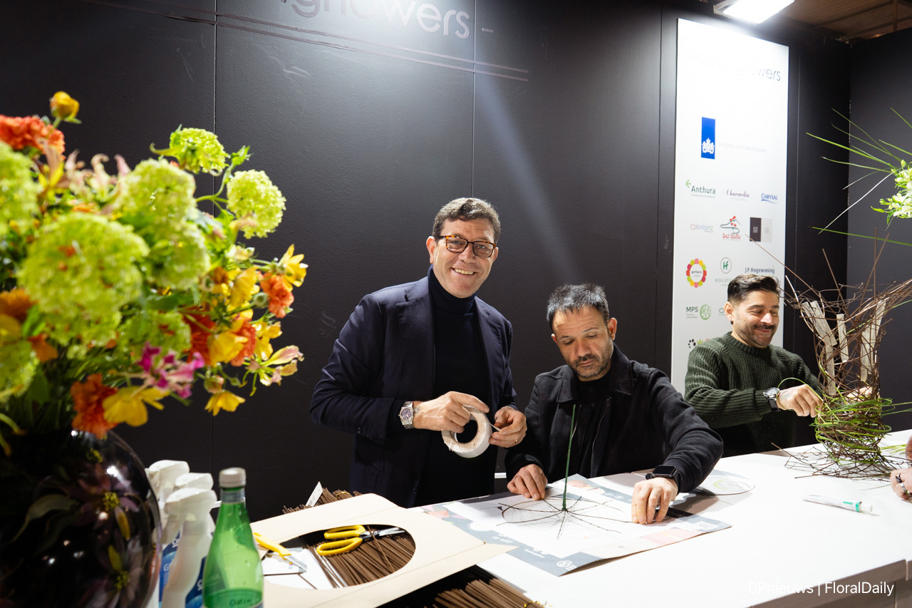 Floral artist Massimo Iodice is working on a frame for a floral artwork