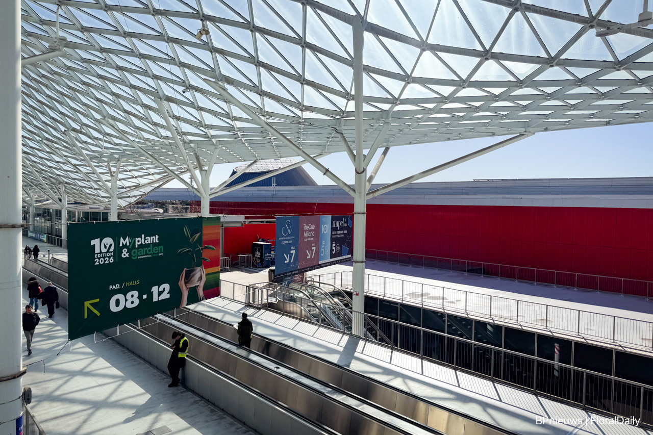 A sunny Milan and entrance to Myplant & Garden, on the same site the ice skating section of the Winter Olympics took place