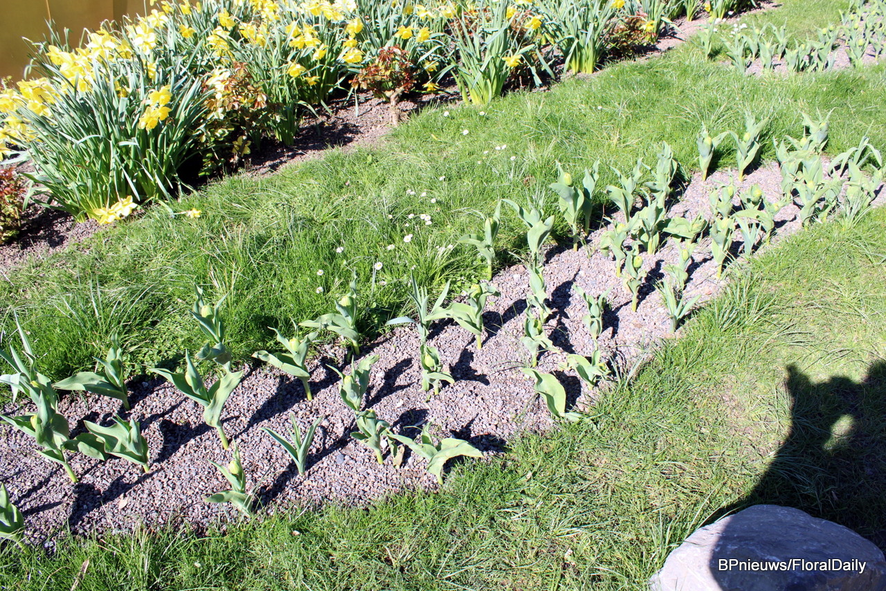 In the park, the tulips have already been planted. Now it just takes some patience for them to bloom