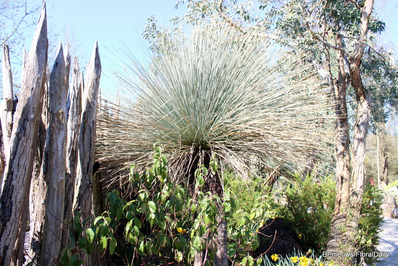 On to the Australian section. This 'black boy' plant comes from the Australian desert and must be well cared for to thrive in the Belgian climate