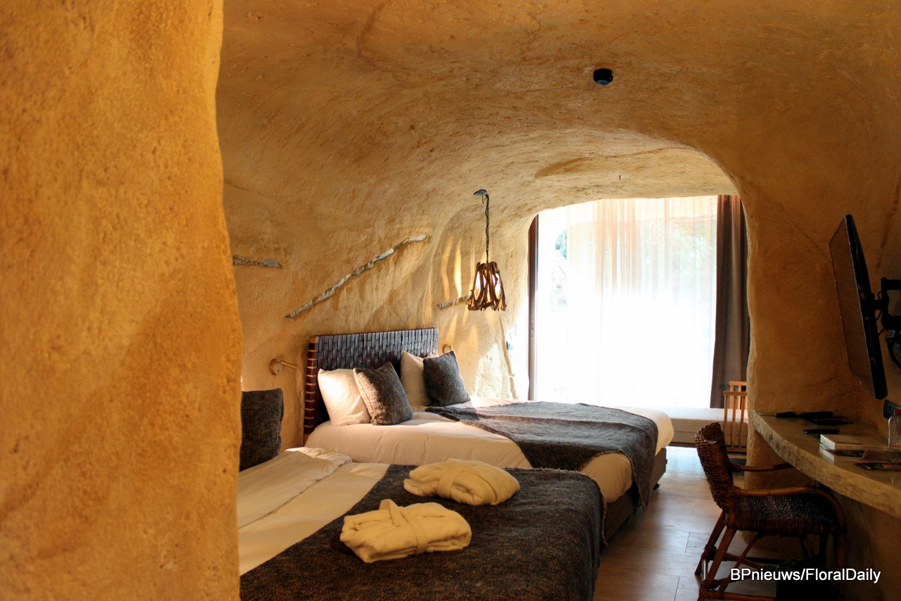 It is even possible to sleep in the tropical greenhouse. Below, you can see the hotel rooms incorporated into the rocks