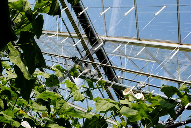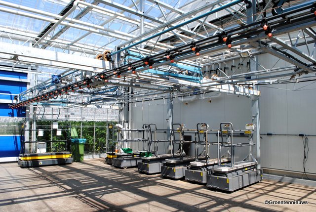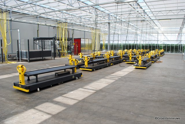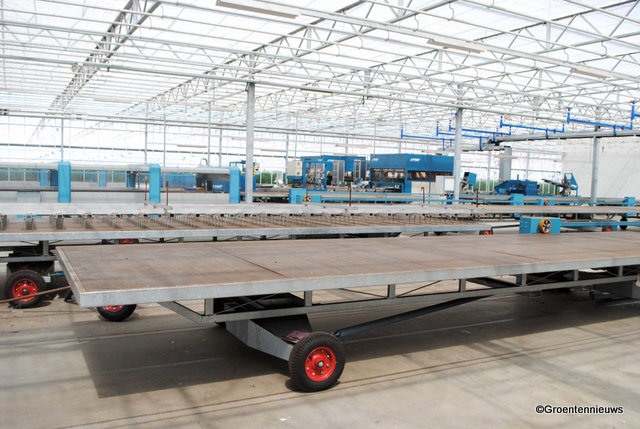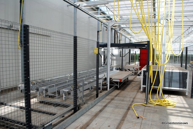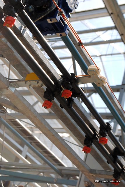 The greenhouse is equipped with a dual-screen installation by Leen Huisman. The second screen is required for the production of bedding plants. In summer, only one screen is used. At the top of the greenhouse is the transport system for the production of bedding plants.